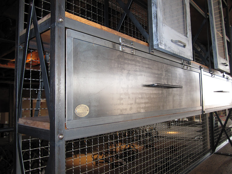 We used 3 large Ellis consoles as the base for this custom Ironworker shelving unit. It spanned 25′ wide x 14′ tall, weighed around a ton, and was fabbed in Phoenix and then shipped to NYC.