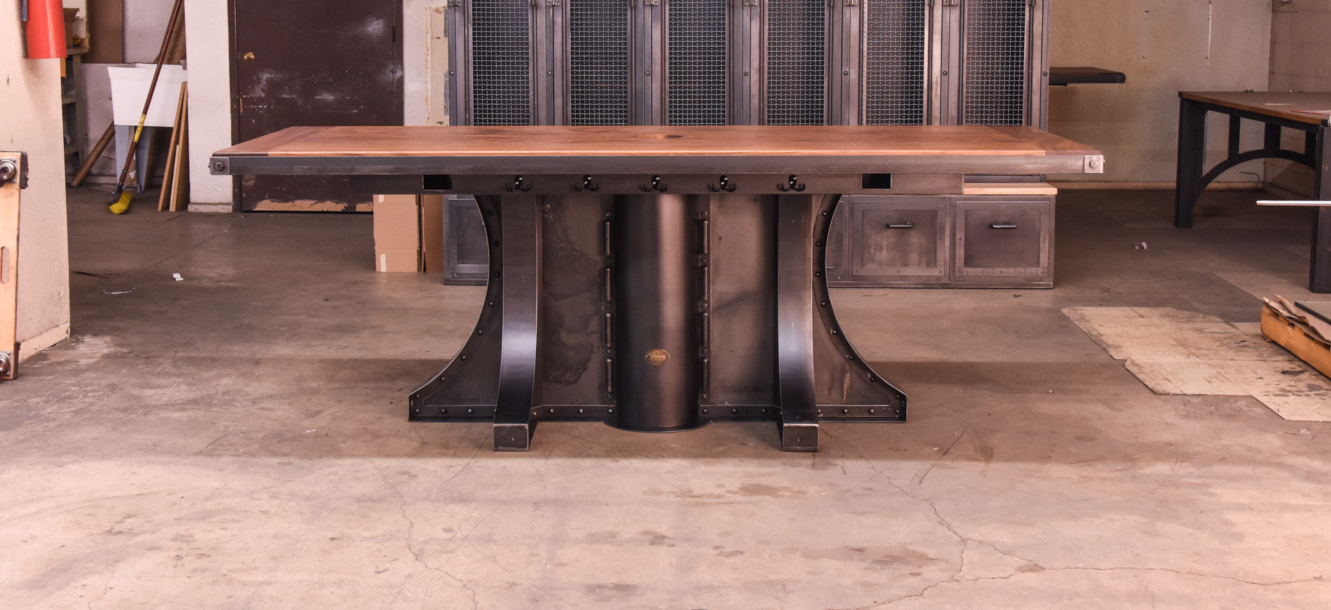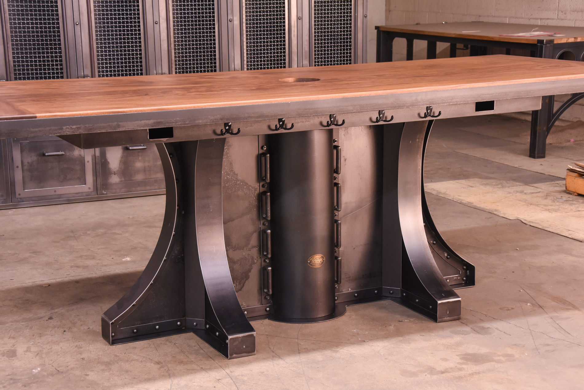 We customized our Liberty design to include conduit for beer taps on the top. The Mahogany top has a large hole with an accessible tube underneath for electrical and plumbing. It’s going in a bar in Philadelphia with a similar Hure table soon and I hope to get pictures of it installed.