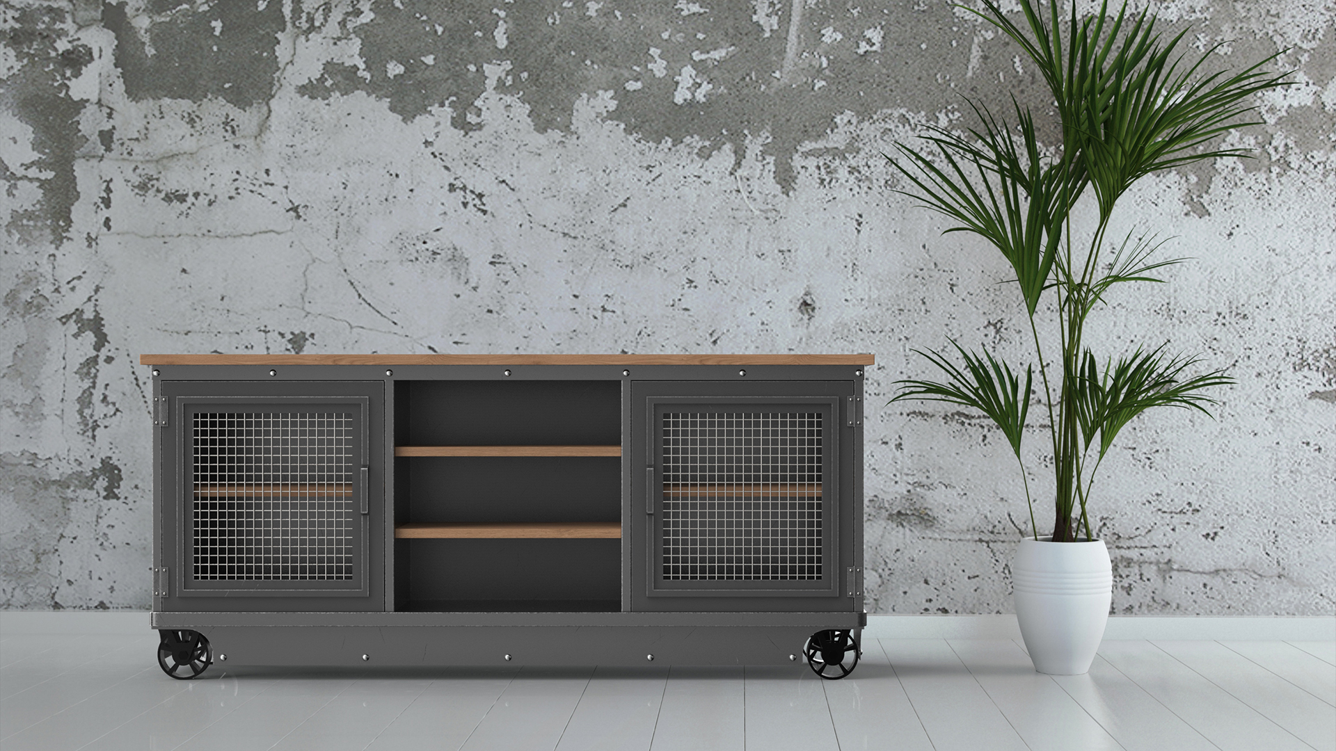 The Boxcar II Console is part of Vintage Industrial’s varied collection of luxury furniture. All of our designs are made in America (we steadfastly refuse to manufacture abroad to cut costs) and each piece is meticulously hand-crafted, using a blend of old world artistry and modern technology. Our unique custom tailoring seamlessly harmonizes with the personal needs of individual owners and businesses. Our team has more than 125 years of metal work and 100 years of woodworking experience and we are socially and environmentally conscious: we plant at least ten trees for every tree we are responsible for cutting down to make our products.