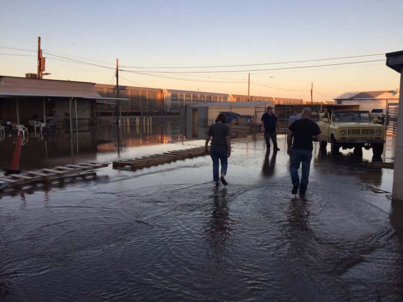 On Tuesday morning we were surprised to find our shop had flooded. A 10″ pipe burst at the corner of our building and created a nice lake for 2 blocks….