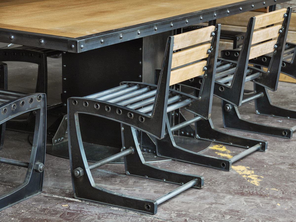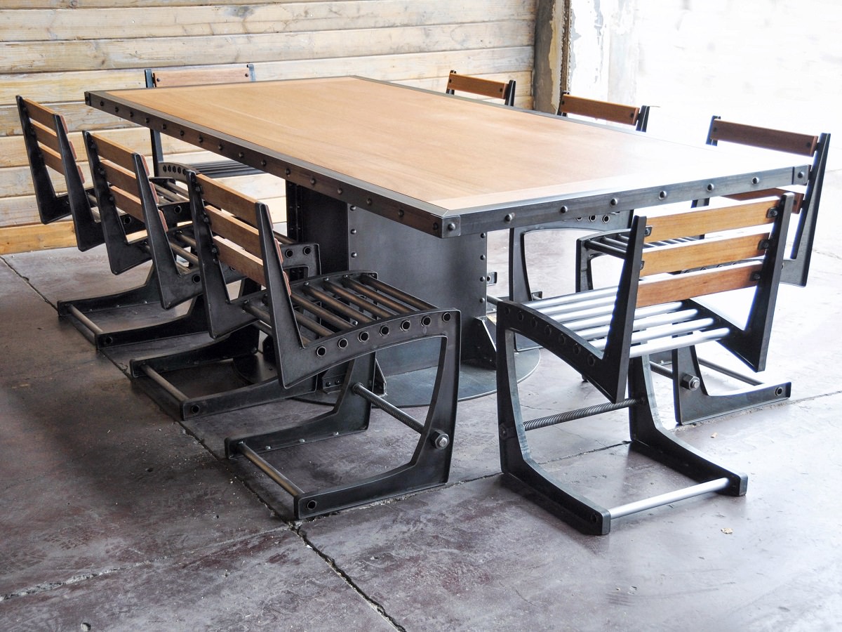 I Beam pedestal base dining table, 10′ top, with our Zen chairs
