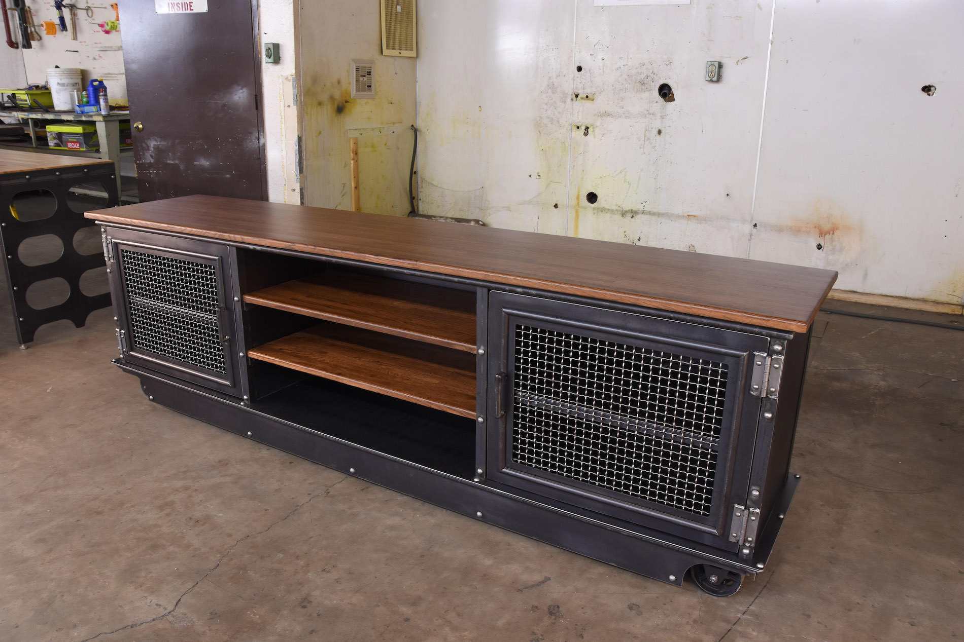 96″ Long Boxcar Ellis Console – We took our standard Boxcar Ellis design and stretched it to 96″. It has two more casters in the middle to distribute the weight which is around 450 lbs. The piece uses our reclaimed boxcar oak for the shelves and top.