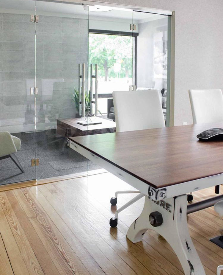 Similar to our red aged Hure, this one uses a creamy white on the bases. The top uses reclaimed boxcar wood with a dark stain.