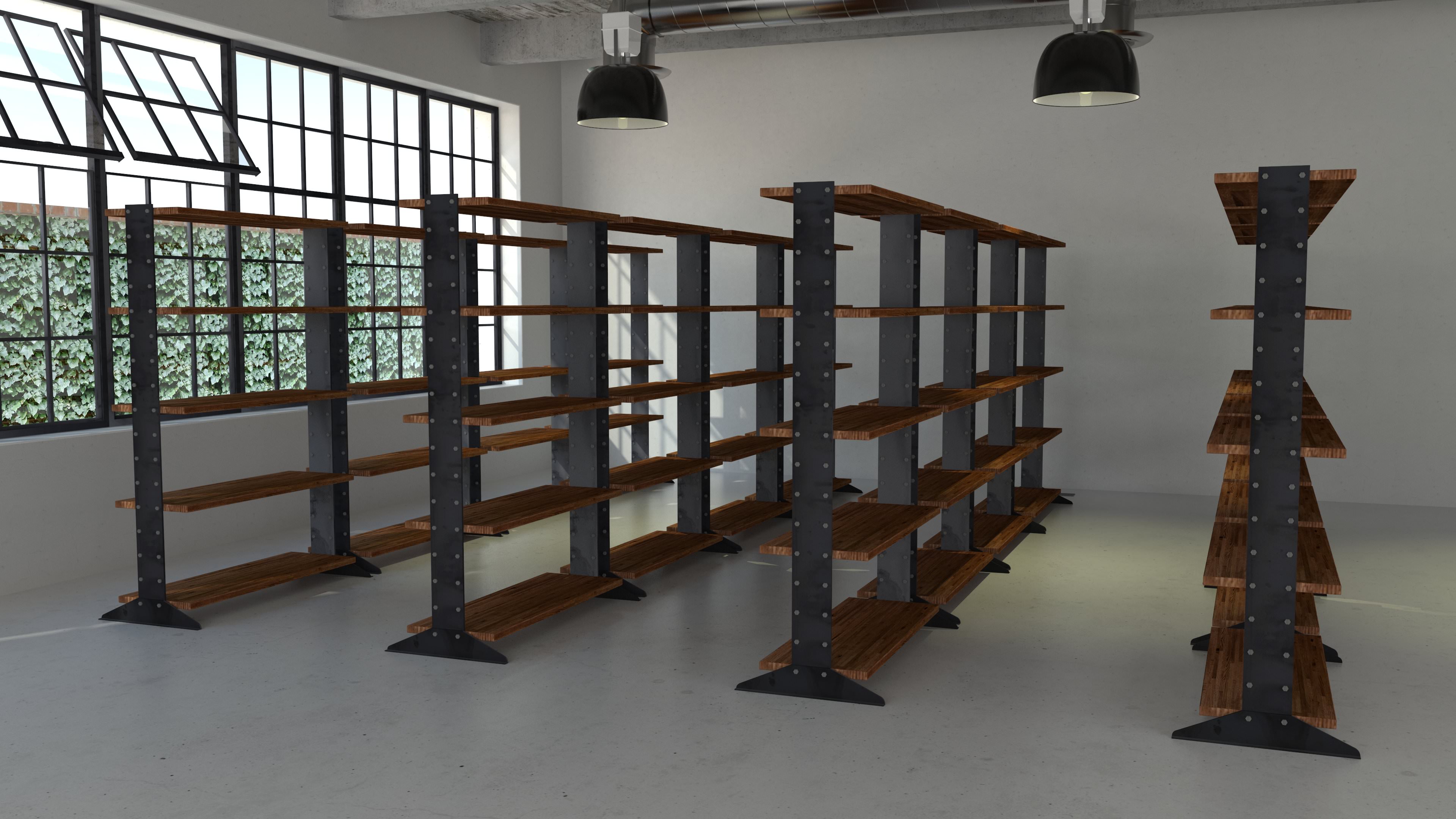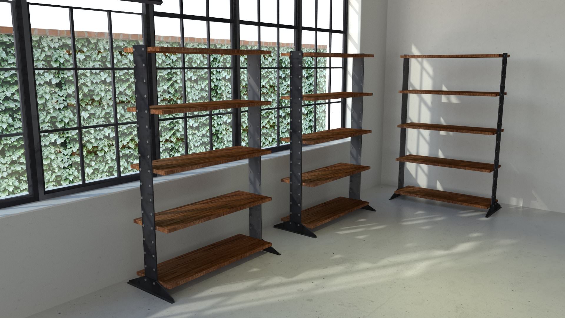 Modeled after a structural I Beam in a NYC building. Shelf has an adjustable height. Shown with dark reclaimed boxcar oak shelves.