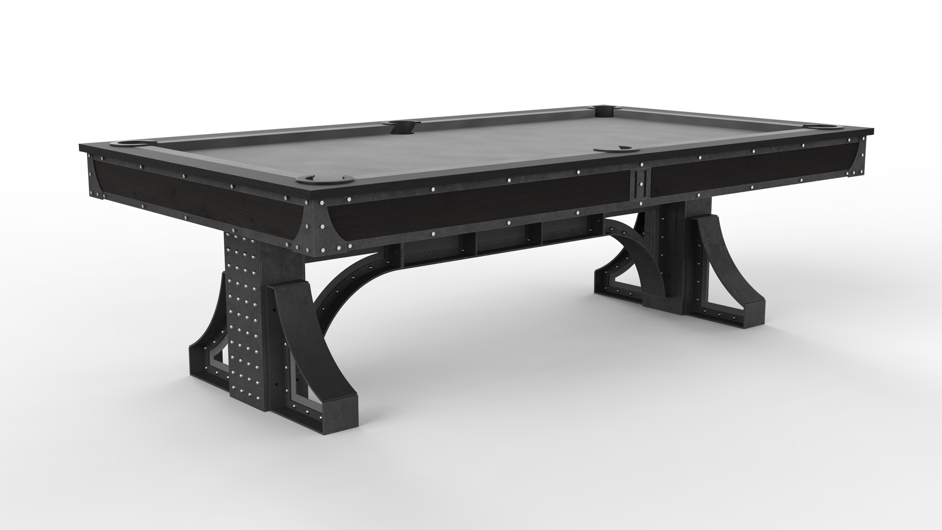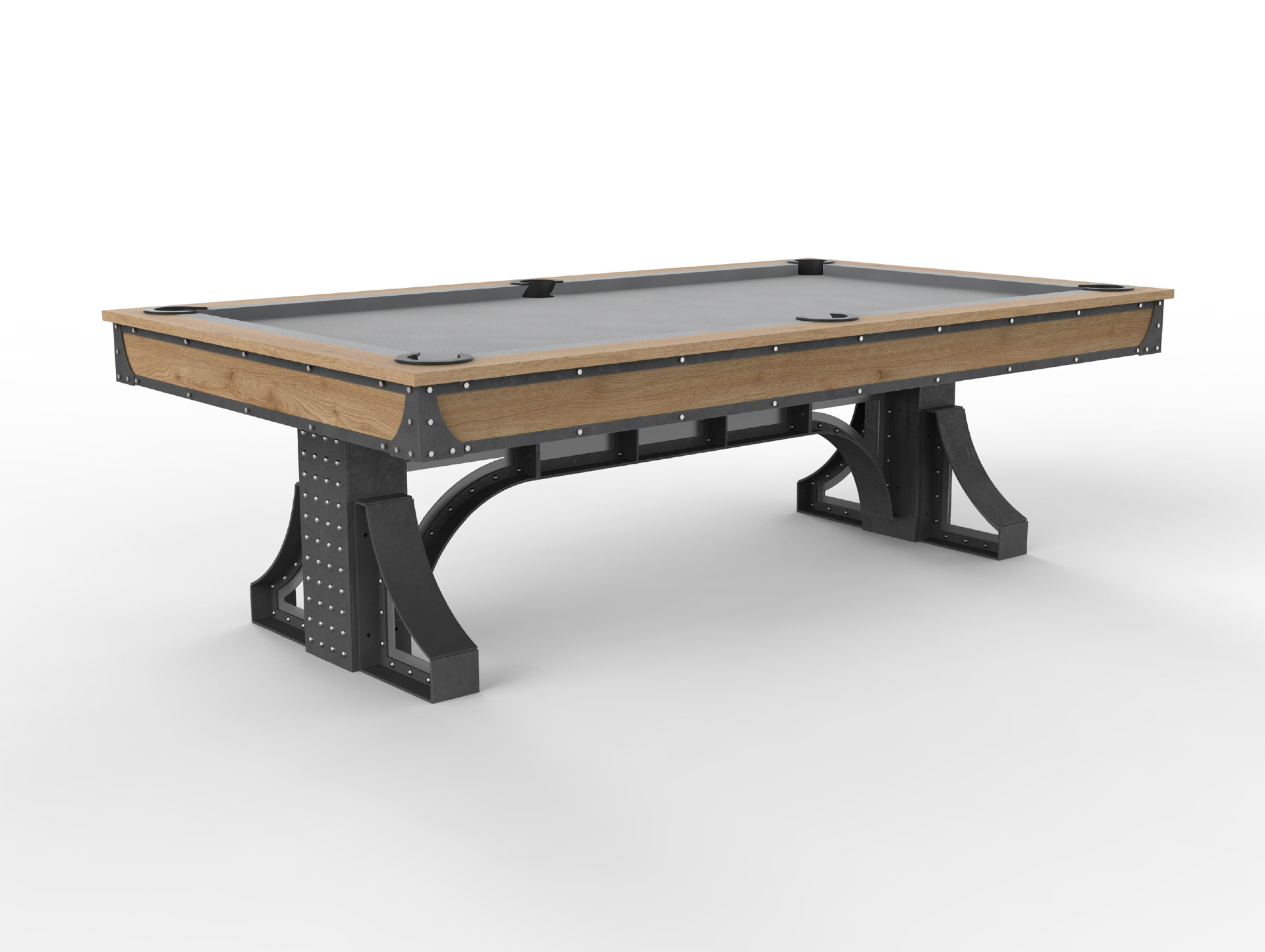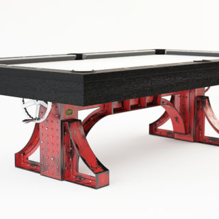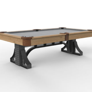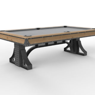 We teamed up with an industry leading pool table manufacturer to bring you the Bronx Pool Table. We made this fixed height and offer it in a couple variations, with steel trim on top, or wood with leather accents. As always, we can customize this piece in many ways including the table size, finish, etc.