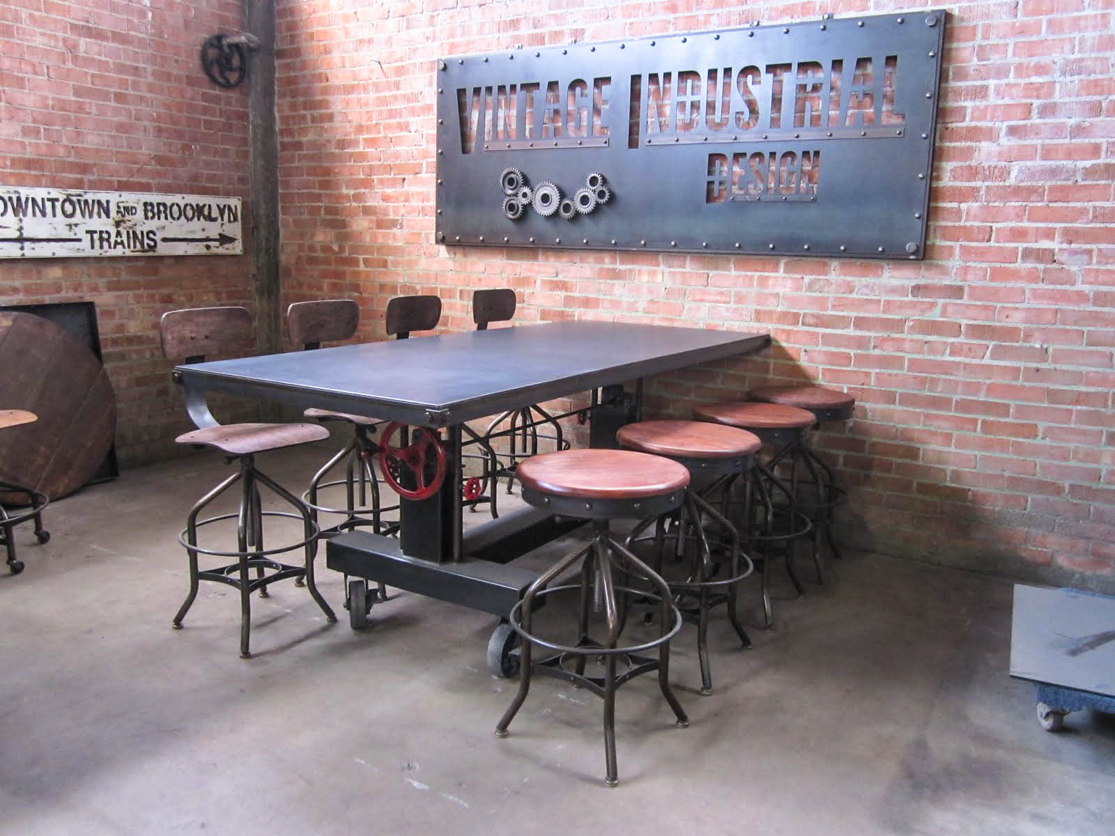 Crank dining table, 8′ x 4′ steel top, on locking casters