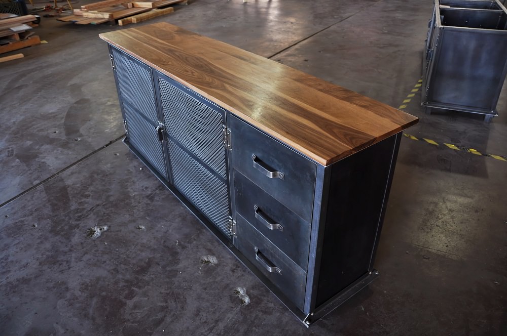 Ellis 78” wide x 18” deep x 34” high (2 mesh doors / 3 drawers), walnut top
