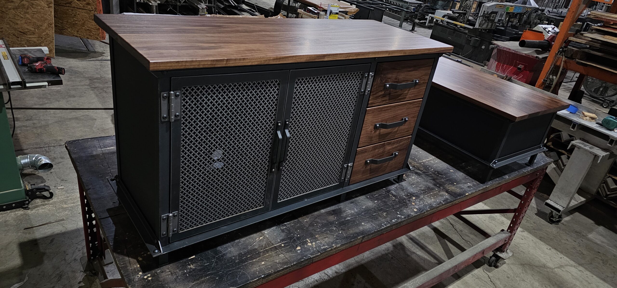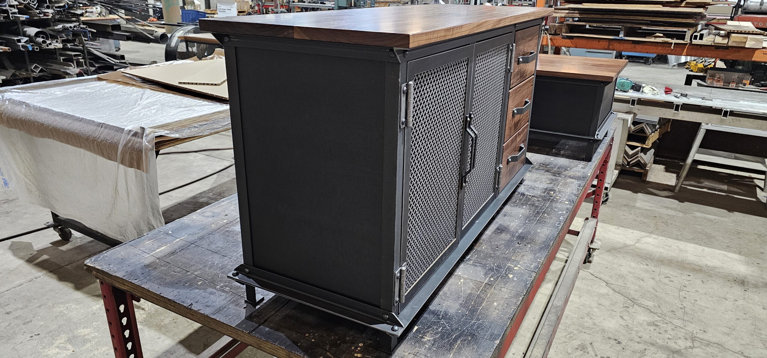 We built this console for a client with a matching coffee table, side table, and Hure Crank dining table.