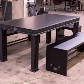 The Firehouse design is our most stout table. The I Beam and C Channel used to construct it are something you’d find in sky scraper construction. So while this table will stand up to industrial use, it also makes for an elegant table that will stand the test of time.