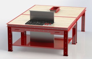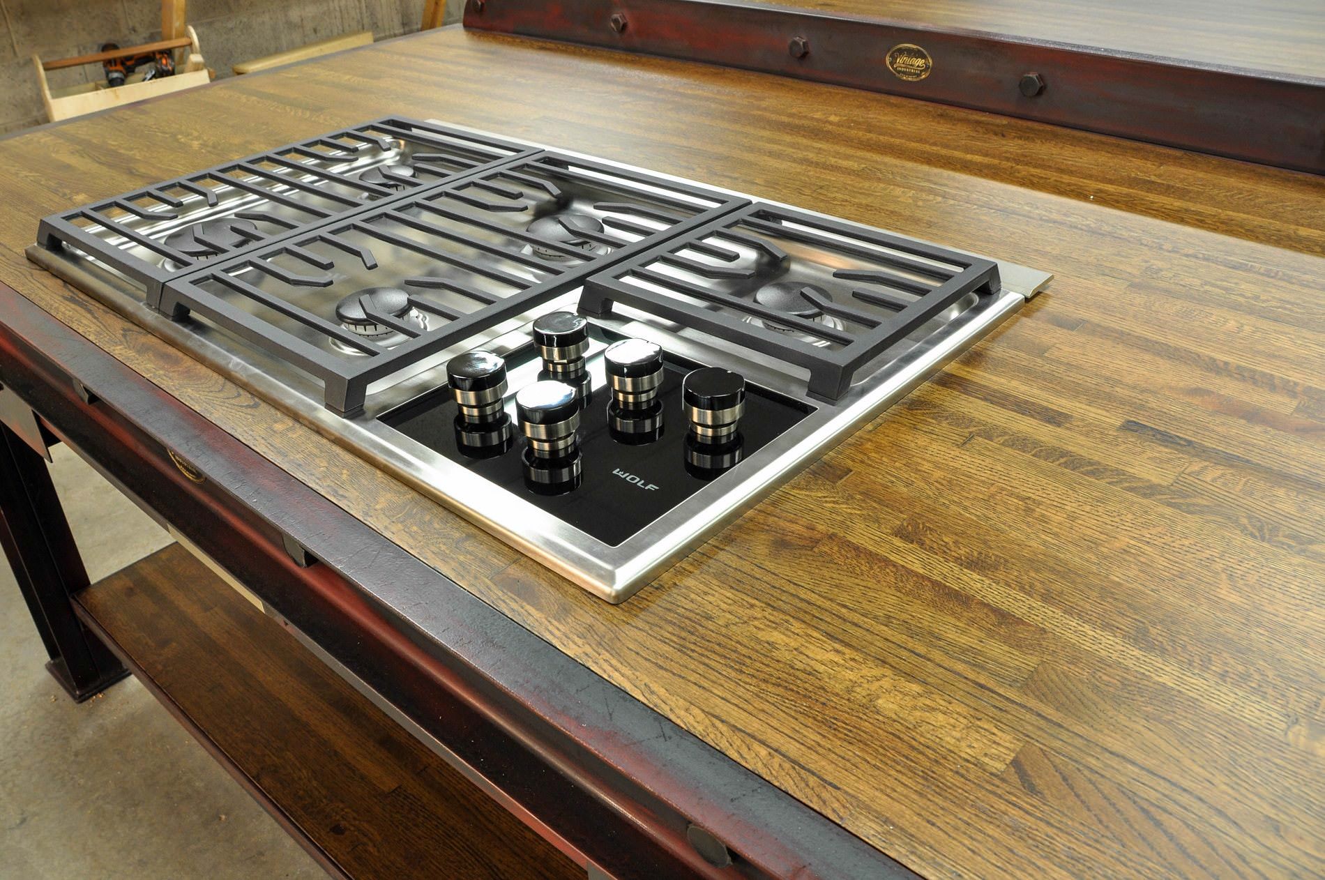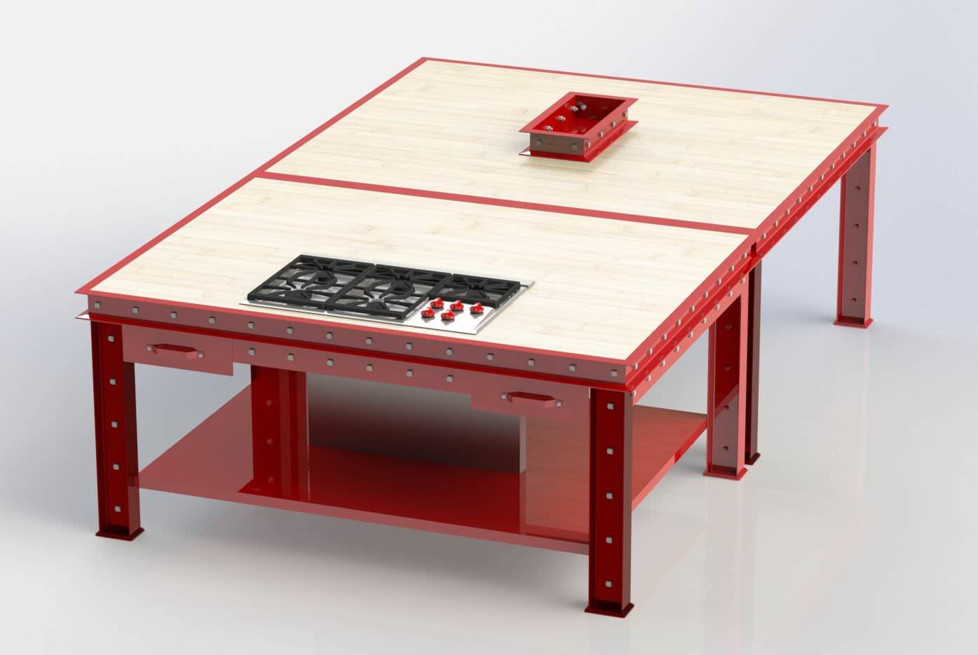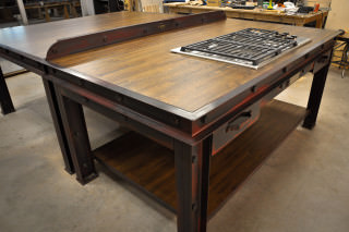 This was built in two sections, the island (with the cooktop) and the dining table section on the back part. The island is 7′ wide x 4′ deep and the dining table section is 7′ wide x 6′ deep.