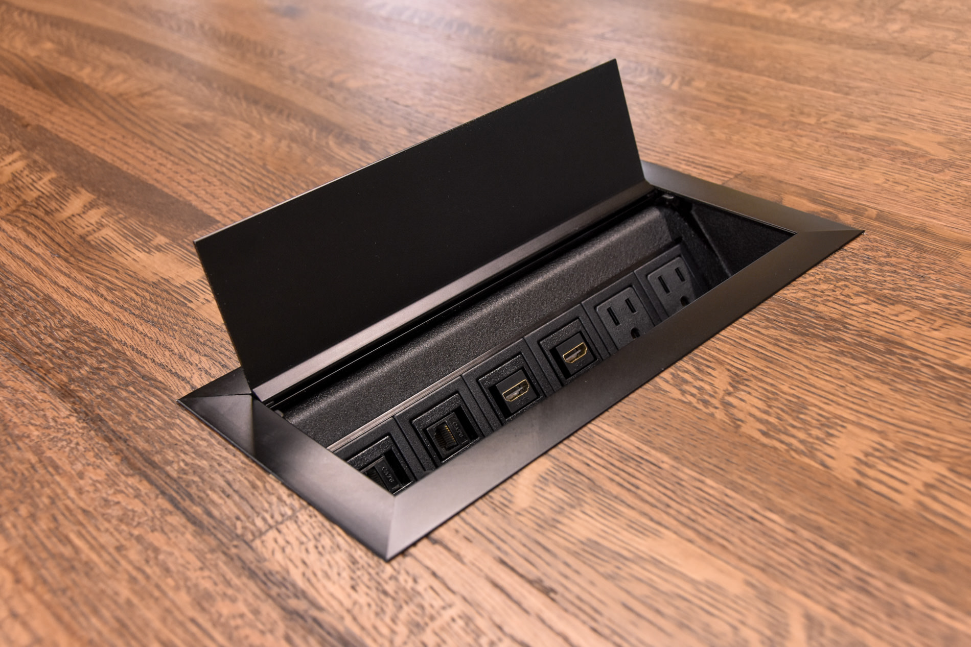 All of our wood and steel conference tables can include data ports and wire management options. Dataports often include USB, HDMI, power outlets, firewire, etc…