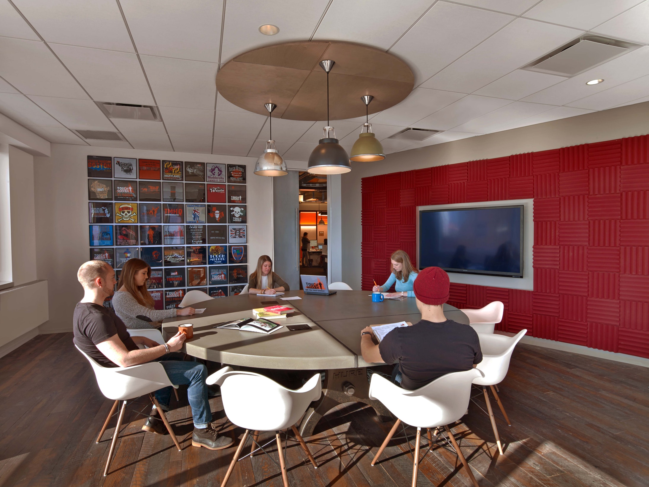 We built this very custom table for Tough Mudder. M Moser Associates was the design firm specifying the table and doing the interior design on their space.
