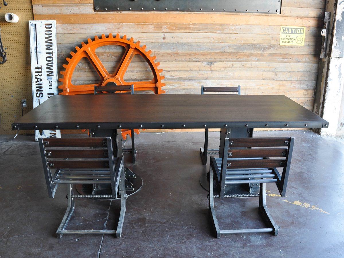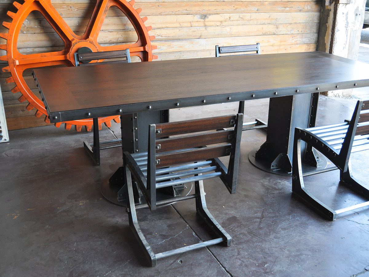 96″ x 40″ walnut I Beam table with Zen Chairs