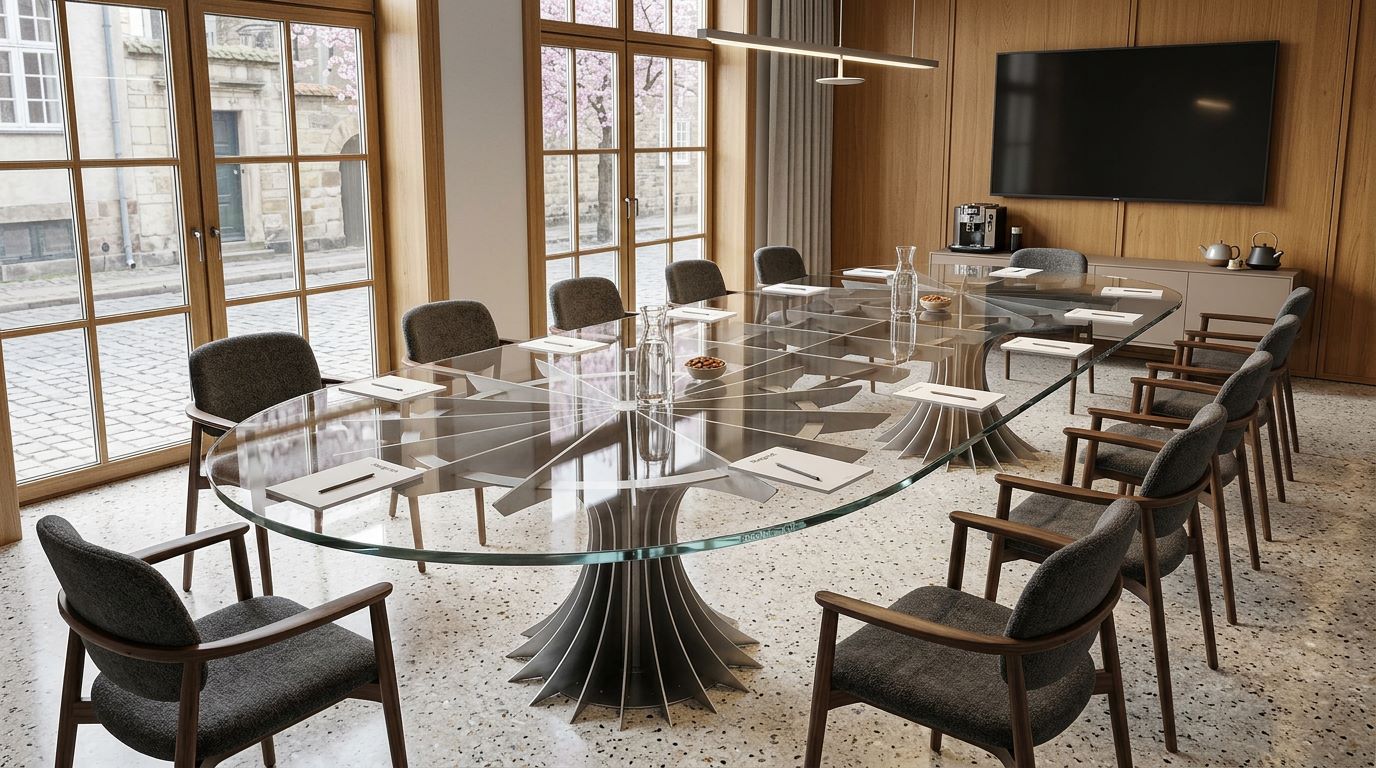 Scale your vision with the Large Compressor Conference Table, a breathtaking expansion of our aviation-inspired design. While a single base captures the essence of a jet turbine, the multi-base configuration transforms your workspace into a masterpiece of synchronized industrial power.
