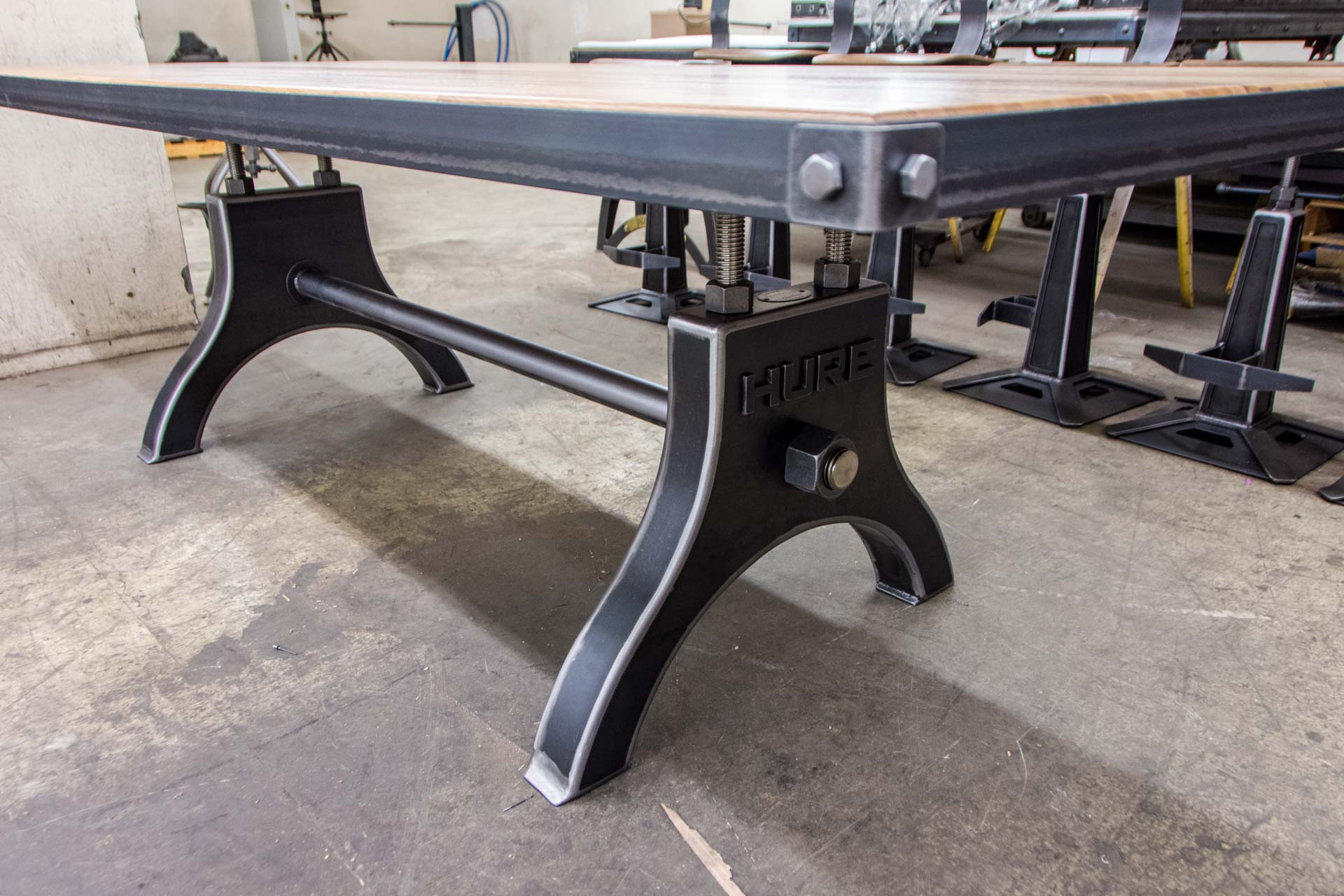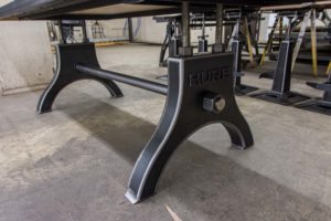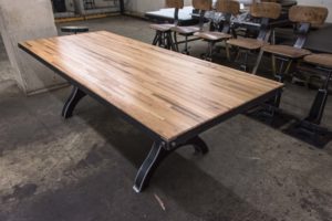 This Hure table features a reclaimed boxcar oak top with a natural finish. The base also has our natural finish on it which shows the grain of the metal. This 96″ x 40″ table would be ideal for a dining table, conference table, or a workstation for a few people.