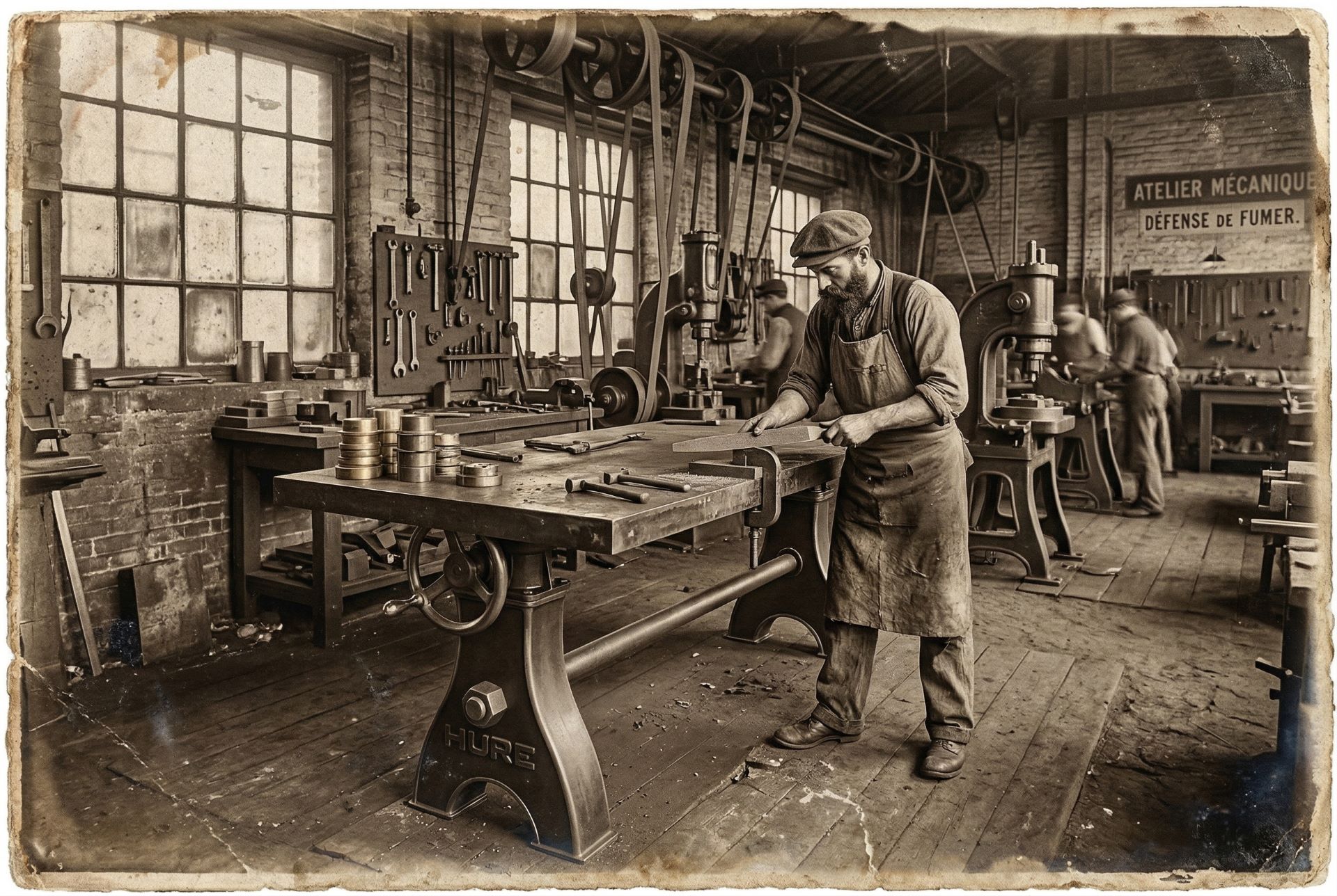 The final photo is an AI imagined picture of the Hure table in a late 1800s factory.