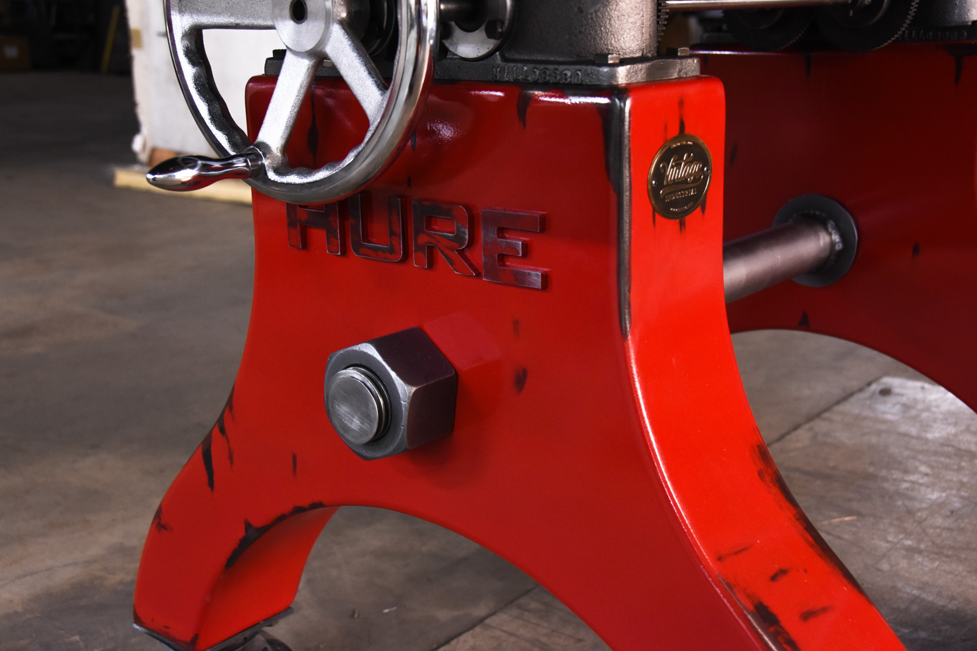 This unique crank table was built with locking casters which have rubber wheels for floor protection. The steel top adjusts 12″ up and down. The finish is our aged red which is similar to the Bronx table.
