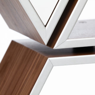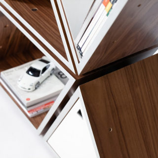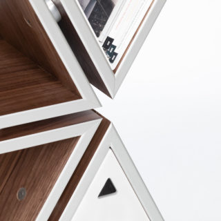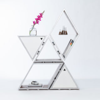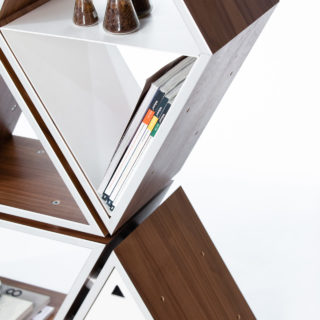 Tetra represents an innovative approach to creating a multifaceted shelving unit whose interrelated cells allow for a personalized configuration according to one’s imagination. The ease with which the cells are able to interact with each other makes it possible to yield numerous arrangements of this flexible modular system, thus giving its user the control of the final performance. Such creative freedom offers an unprecedented opportunity for individual expressionism through the process of connecting the pieces into the desired silhouette without provided instructions for a defined appearance.