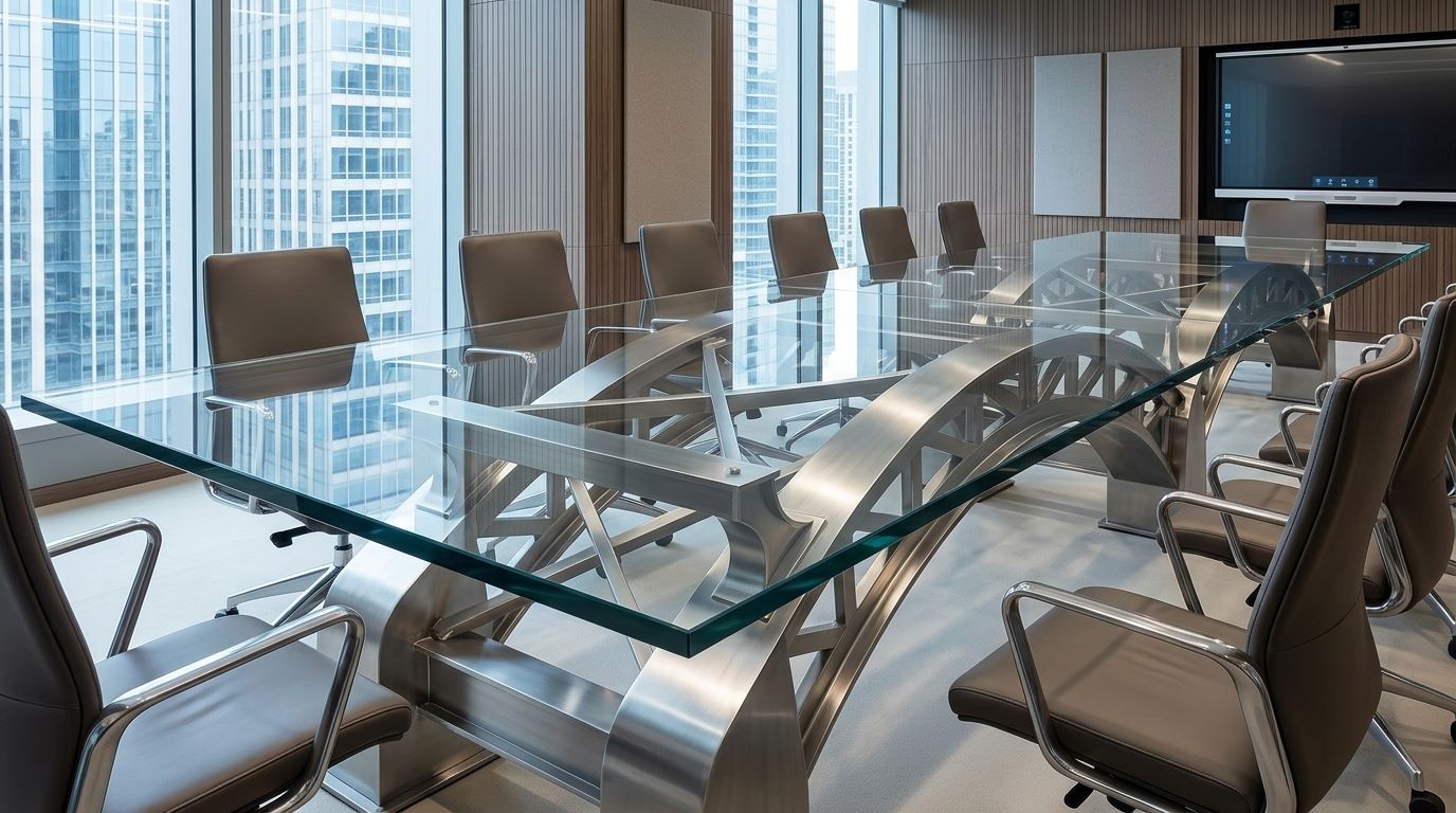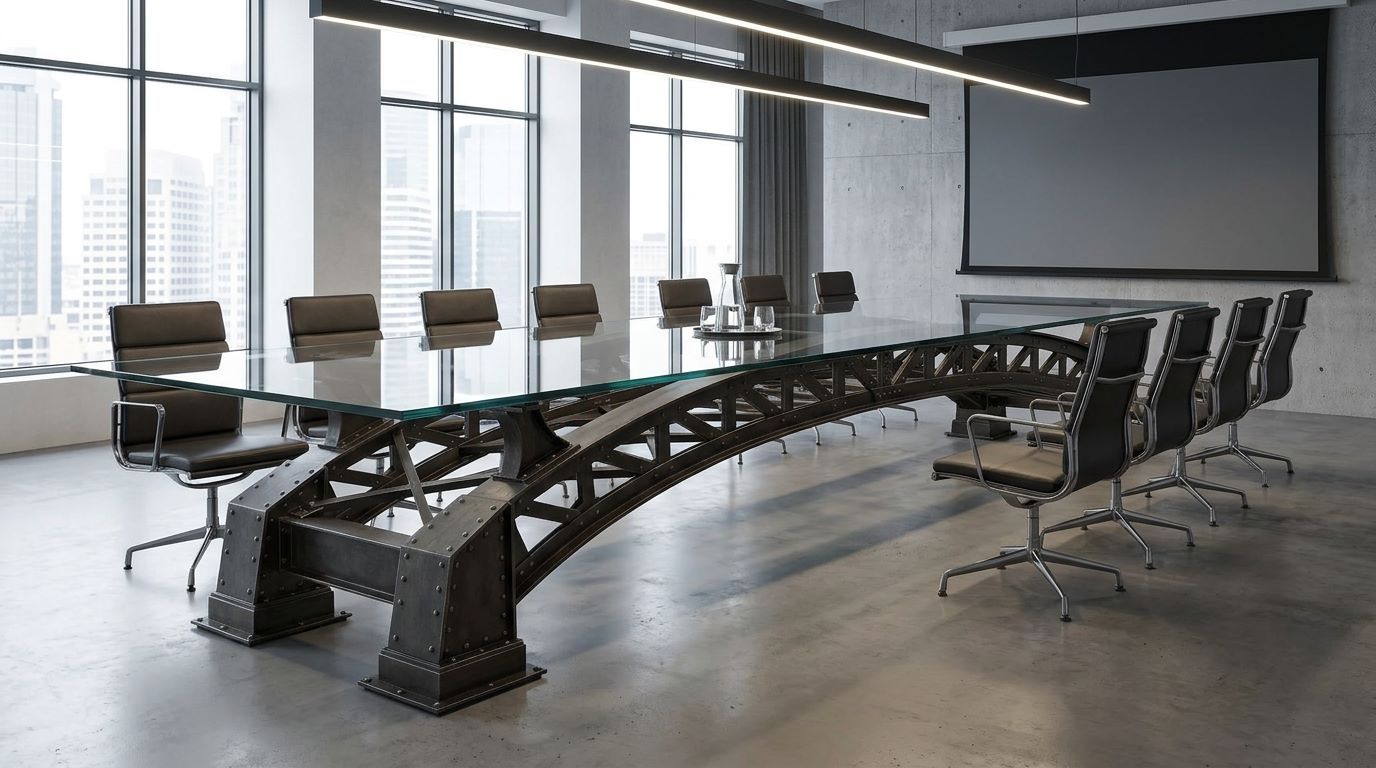 Design Trade Keywords: Sourcing for Architects, Structural Steel Furniture, Custom Aluminum Office Tables, Large Scale Boardroom Design, Minimalist Industrial Furniture, High-End Workspace Centerpiece.