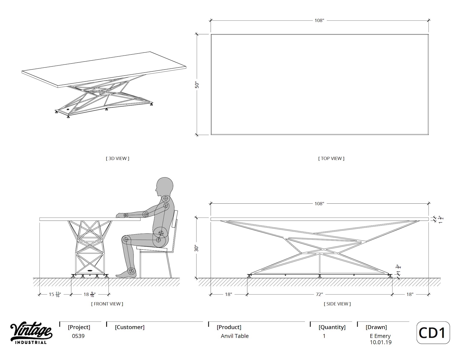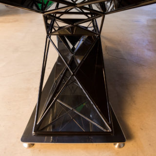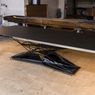 This table was a lot of work to conceive and build, and shows the versatility we have as a company as it is very different from what people have come to expect from us. It’s industrial, modern and the shape mimics the Blacksmith’s anvil, an important tool in our shop.