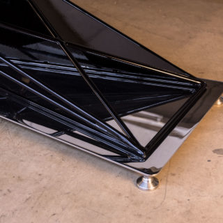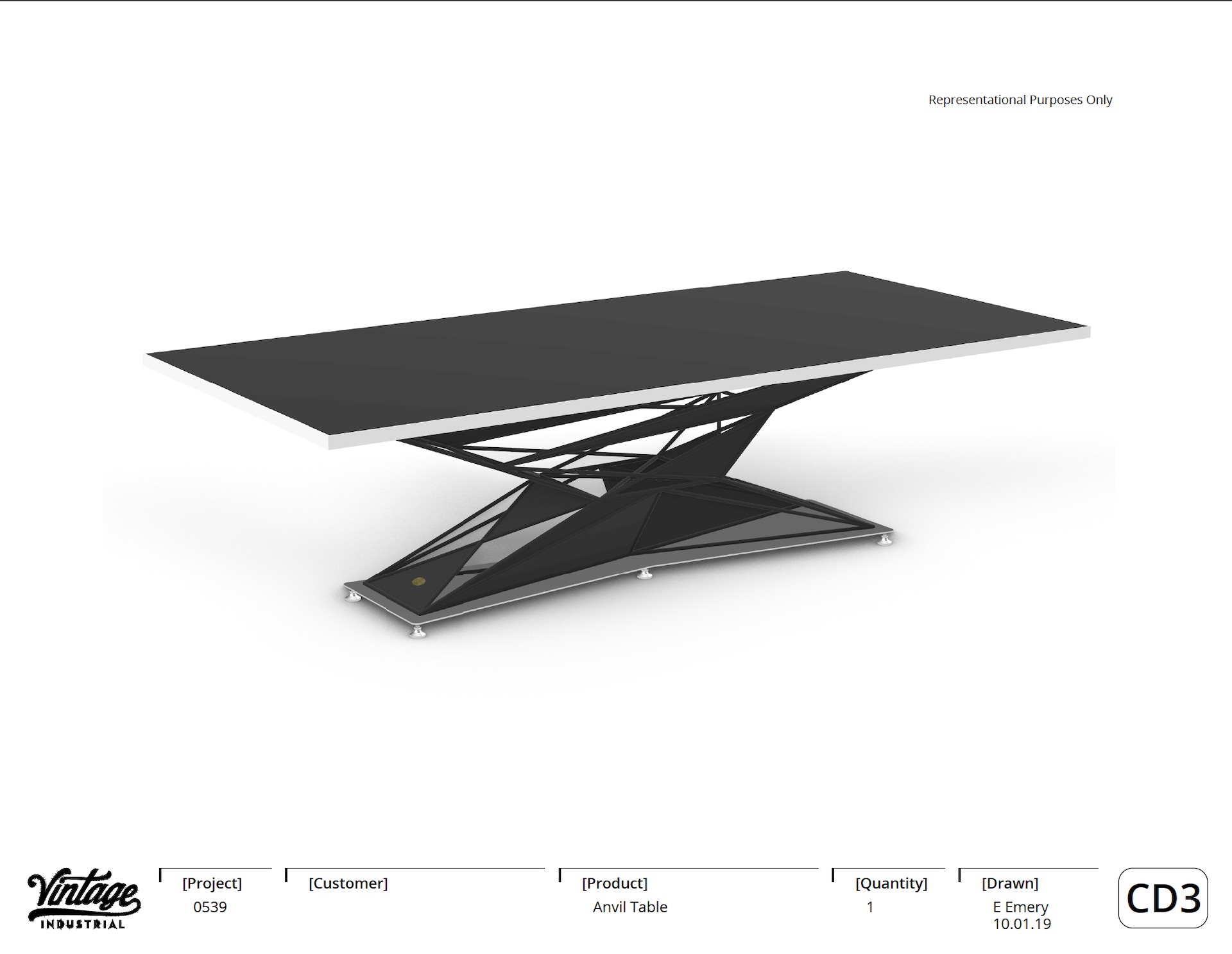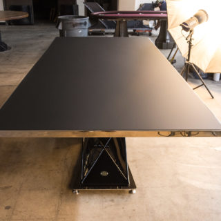 Here’s a custom Anvil table we just finished for a client. They loved the look of black and polished stainless, and so we incorporated that into the design. The base sits on stainless levelers and a thick polished plate, while above that the steel is powder coated glossy black. The black Fenix top is really something special. It resists fingerprints, scratches, is self healing and soft touch, and it is very non reflective giving it a unique look while being super durable. And the top is surrounded by thick polished stainless trim.