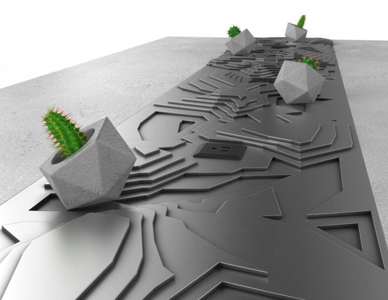The topo table is the result of the RnD departments efforts the bring a level of abstraction to our modern lineup. The table uses concrete with steel inlay that functions as the centerpiece of the form.