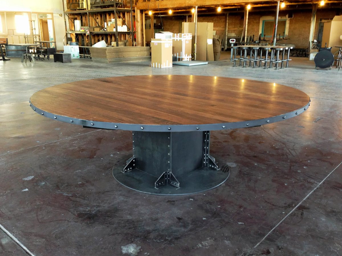 I Beam Table, Round Worn Oak Top – Model #IB14