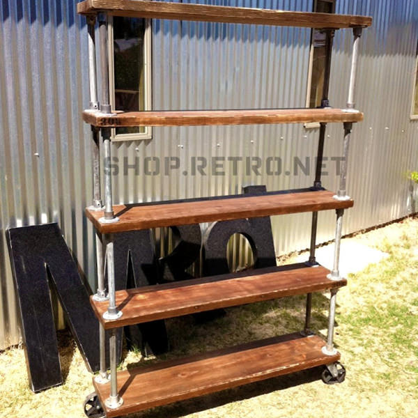 Walnut, worn oak, and mahogany shelves are 2″ thick and solid hardwood
