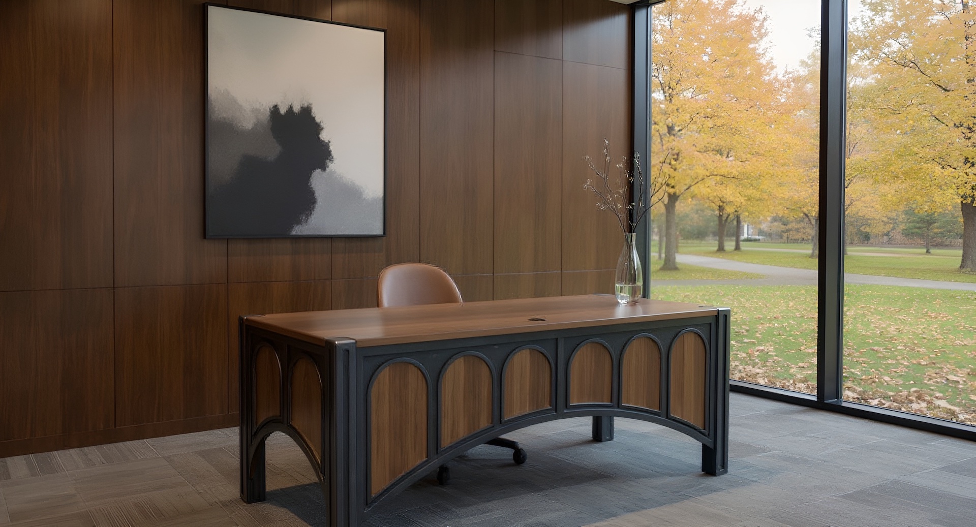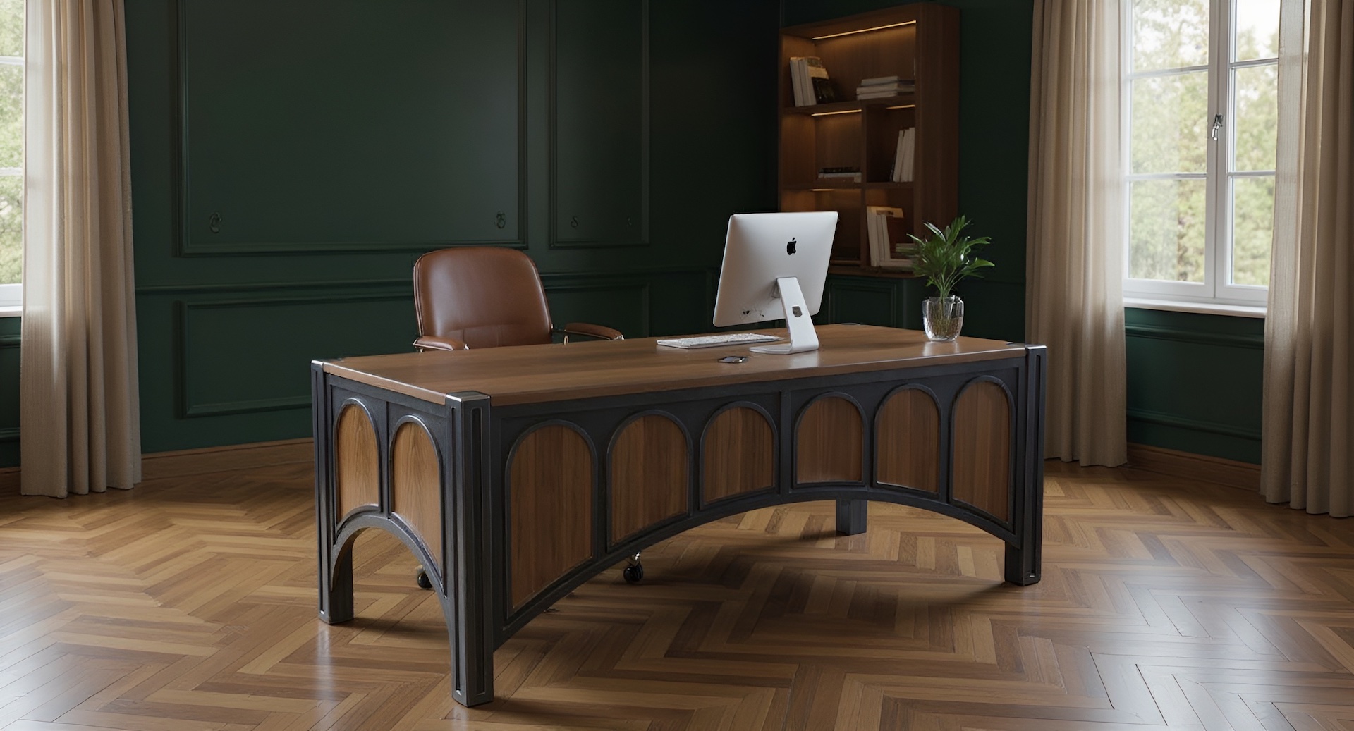 Premium Wood Tops: While showcased with a beautiful walnut top, The 42 Desk can be crafted with your choice of exquisite woods, including rich mahogany, classic cherry, or versatile oak.