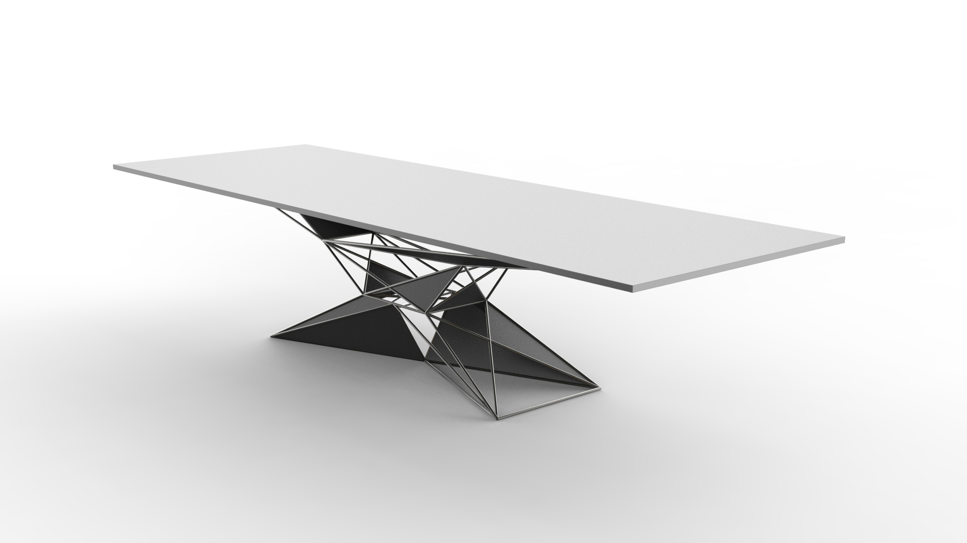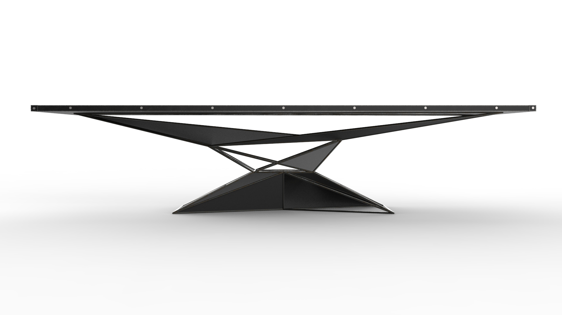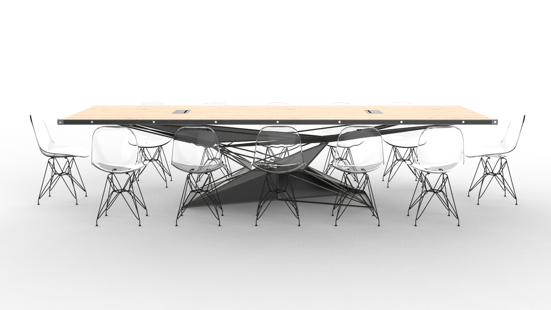 Inspired by the Blacksmith’s anvil, this table is grounded in its true industrial form yet takes on a streamlined, modern “bent”. The face of the anvil table is flat, smooth and strong made of concrete or wood rather than steel. It tapers at its waist, and is supported by an artful base constructed with steel rods and plates. This dynamic design takes a practically massive anvil form and transforms it into a visually attractive, durable and functional industrial workspace