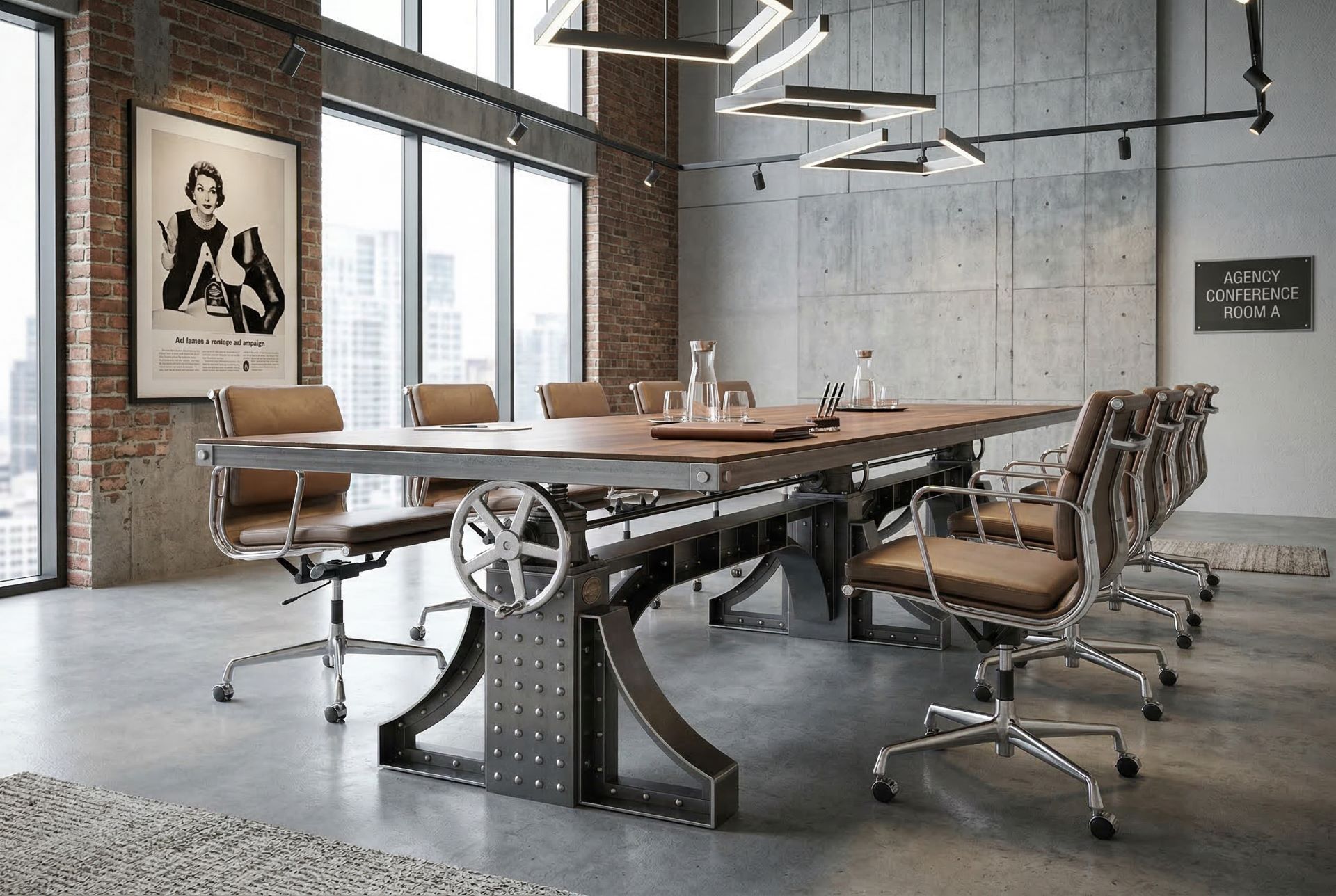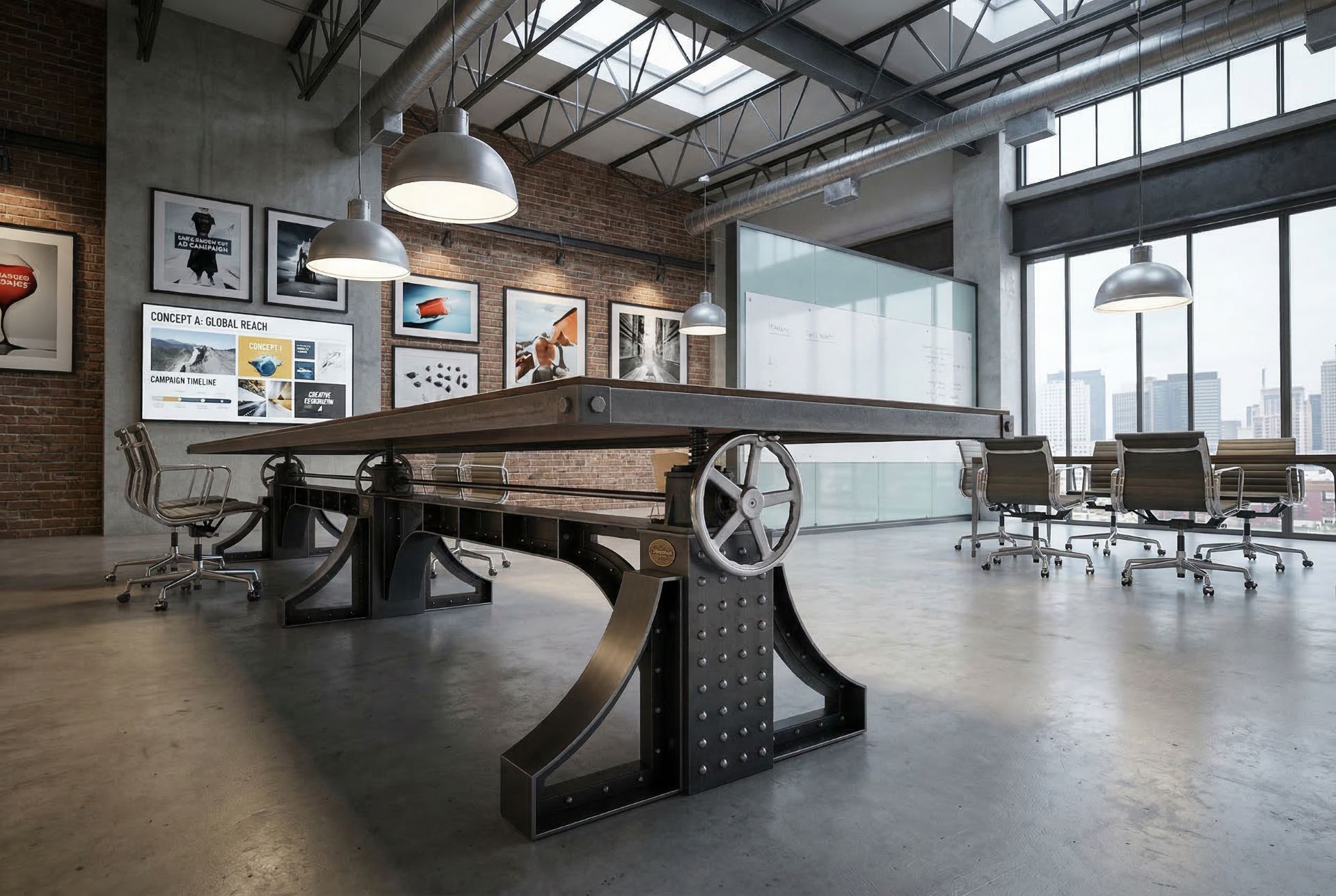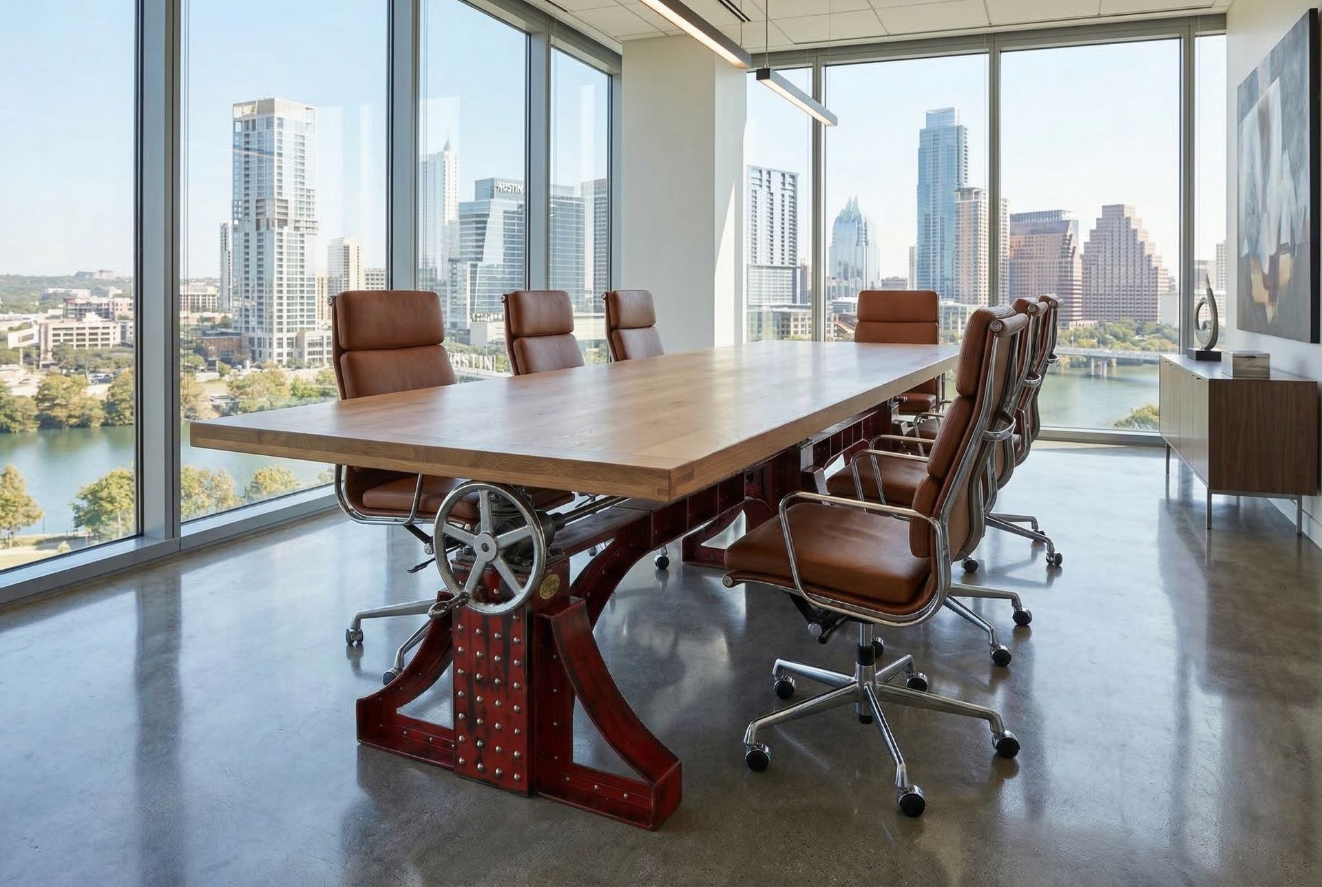 Crank handles on each end. We can move the handles to one side as a custom feature.