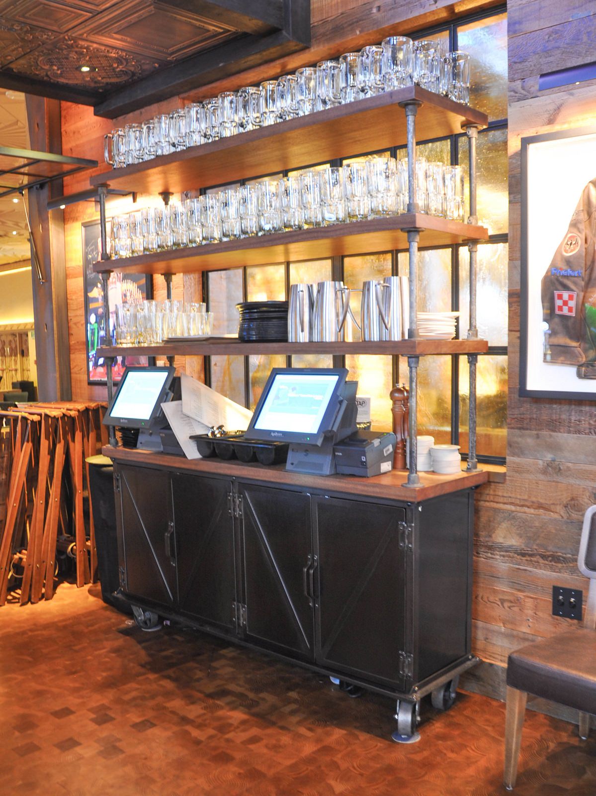 The Ellis design can be built in many different ways and sizes. The first one pictured weighs 350 lbs and rolls around easily with the casters. Options include doors, drawers, various hardwood tops, casters or legs, etc.