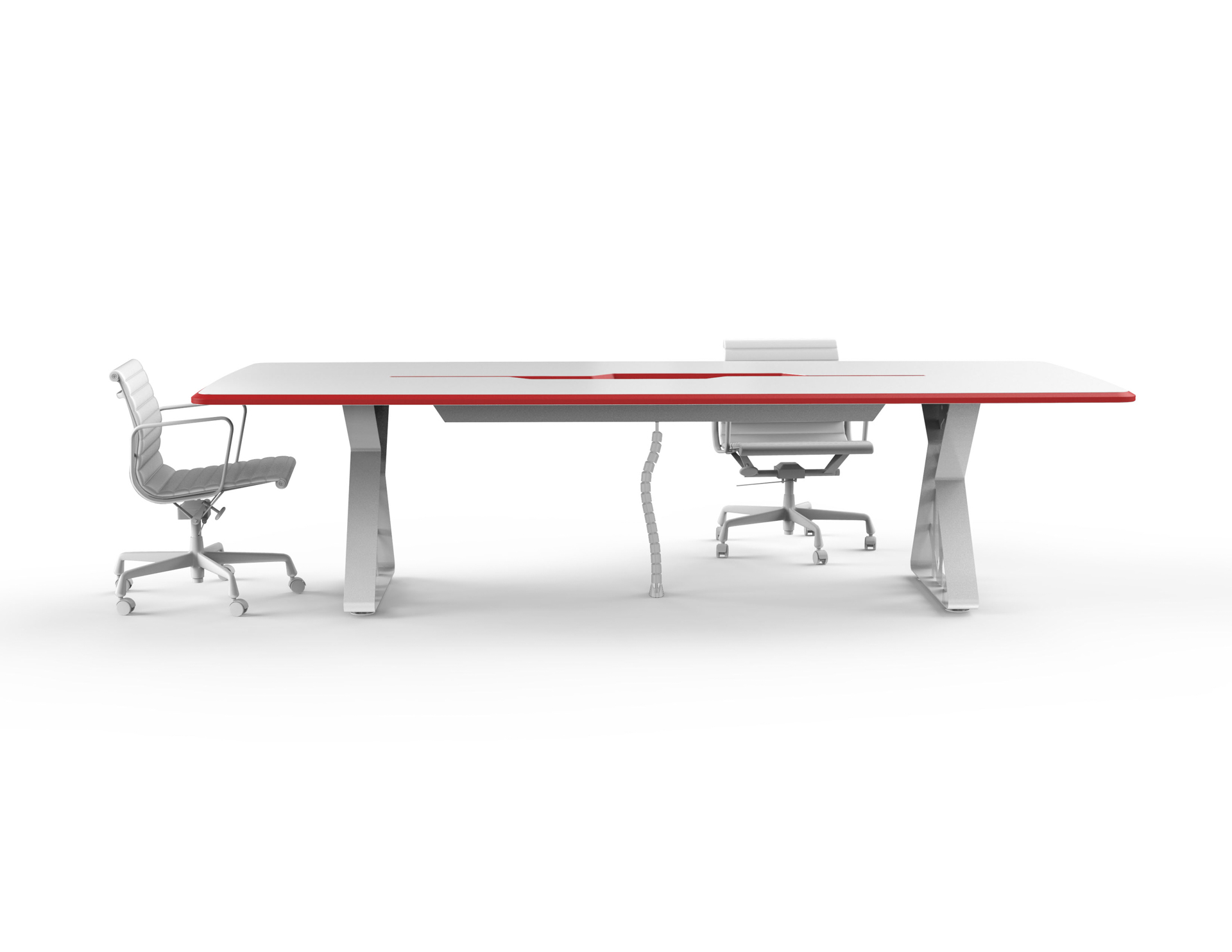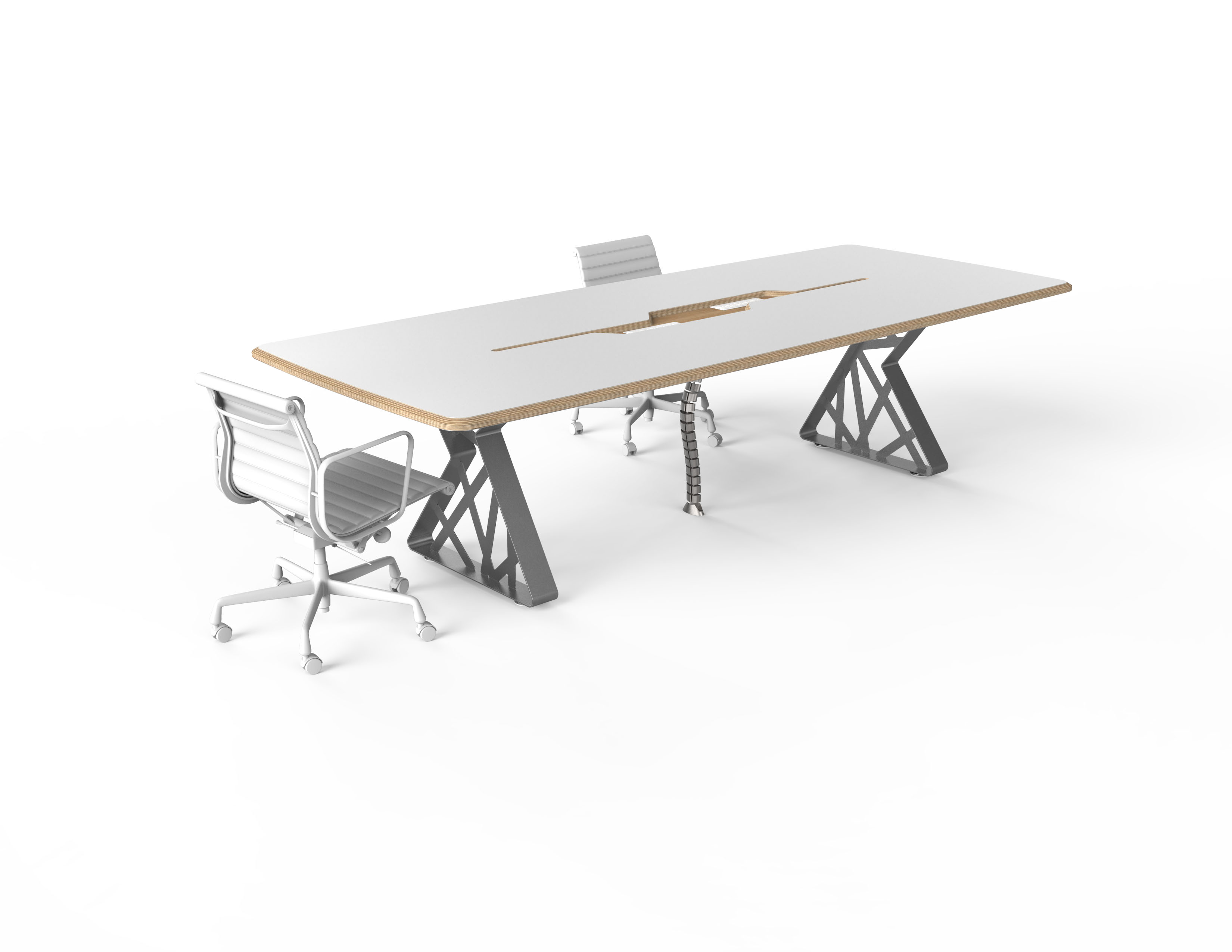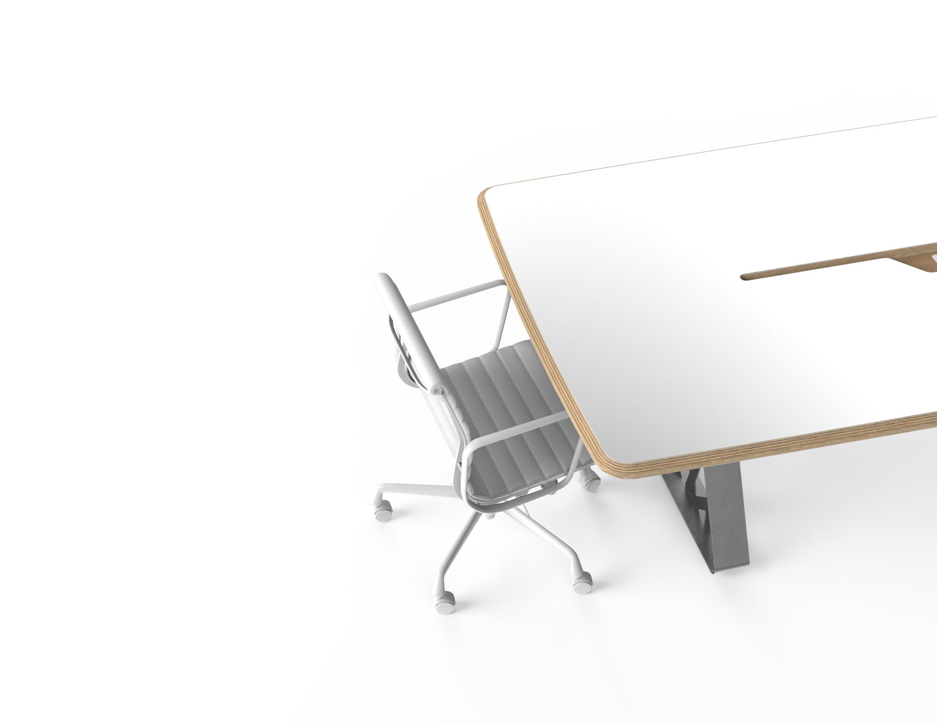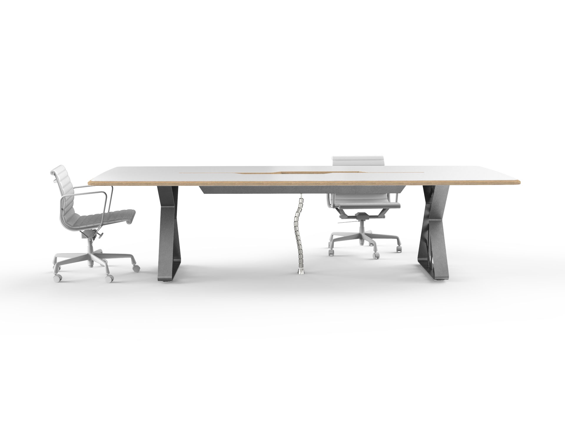 Built to embody the connectivity that modern companies thrive on, this table seeks to redefine conference tables in the digital era of the 21st century. It is supported by two asymmetrical steel legs with a simple, streamline form that fosters collaboration among colleagues.