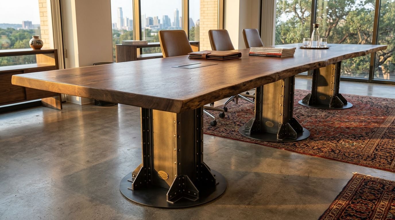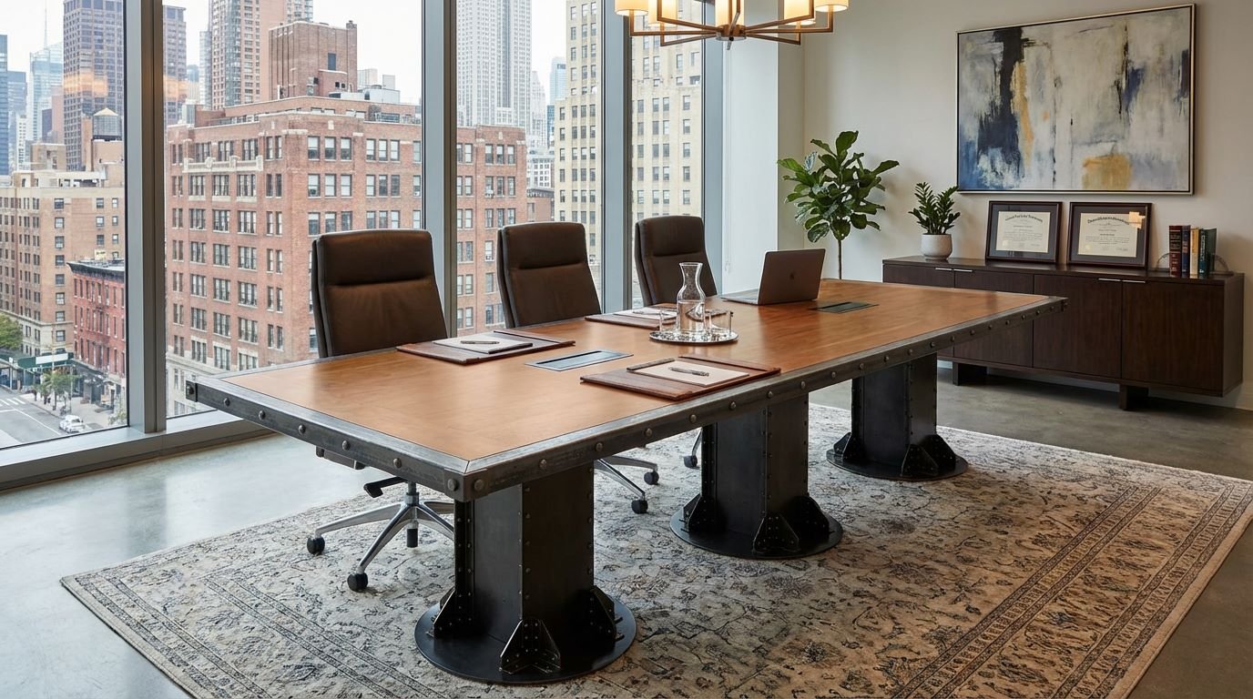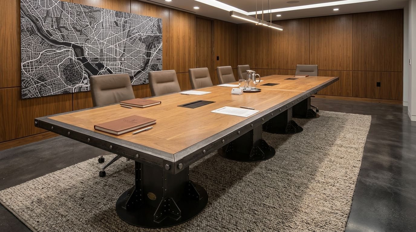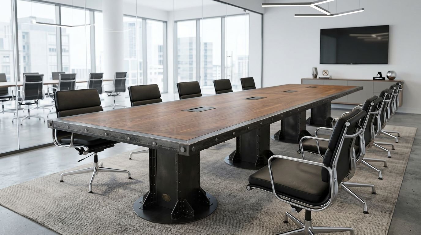 For designers and architects searching for the “best industrial pedestal conference table” or “bespoke boardroom furniture with hidden power,” the I-Beam Pedestal remains the definitive industry choice. It carries the history of American engineering into the modern, tech-enabled executive suite.