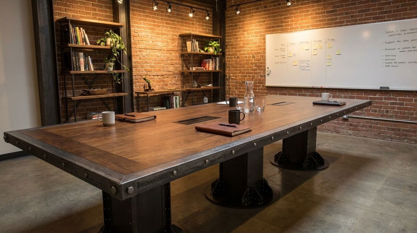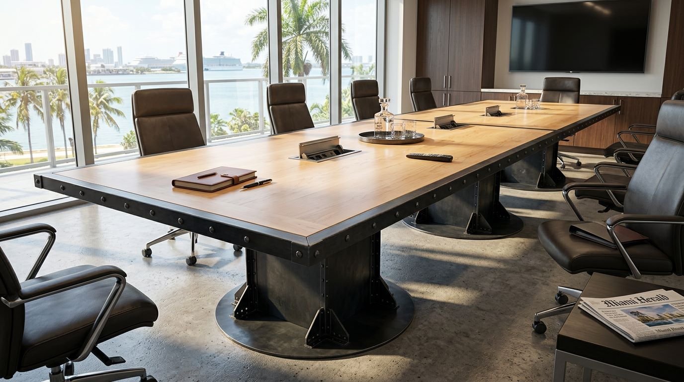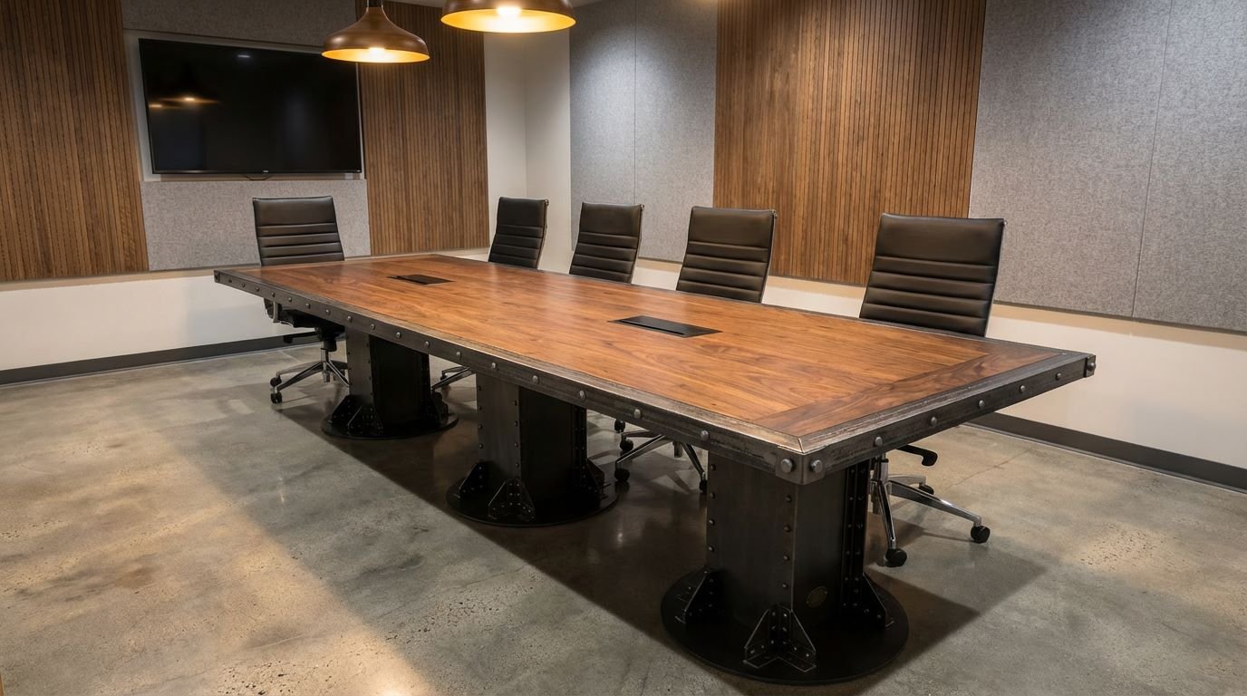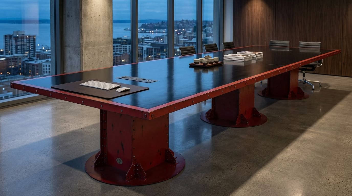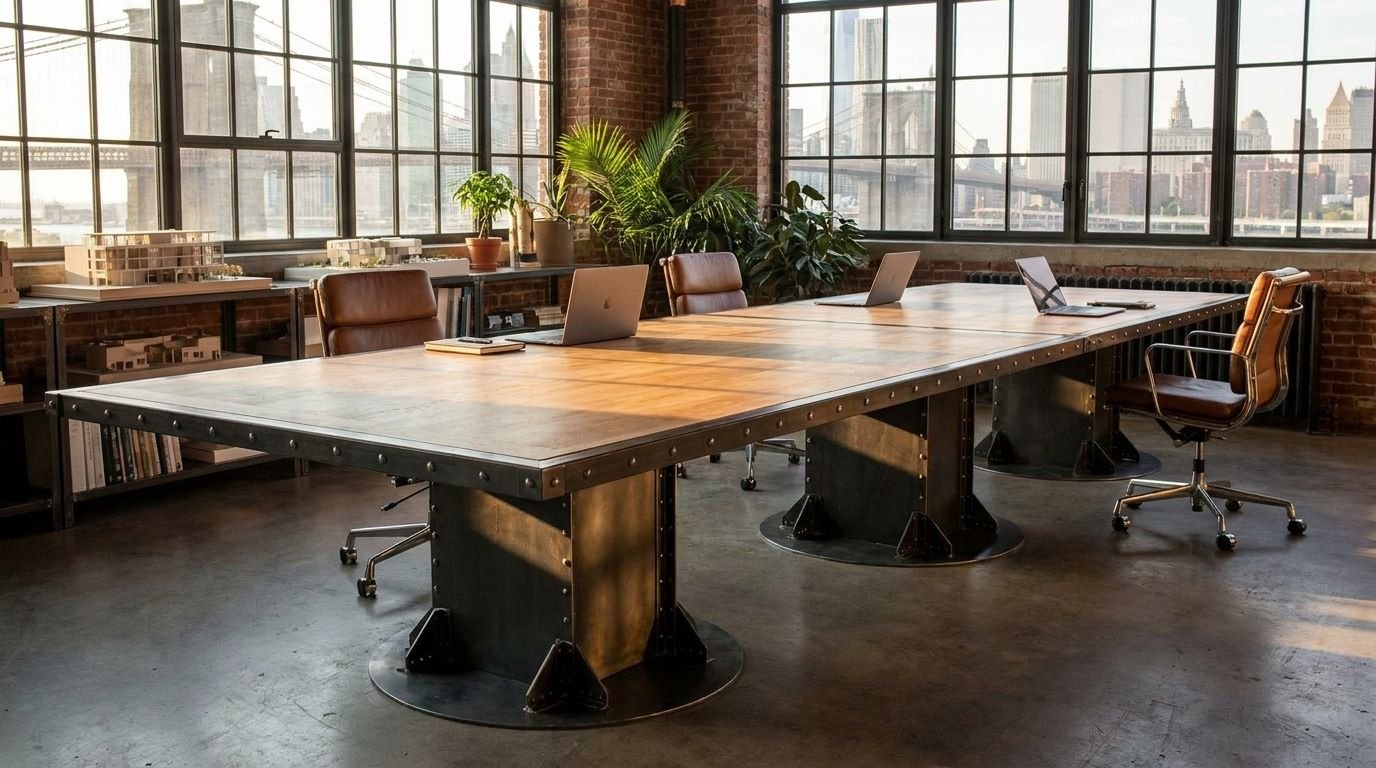 For designers and architects searching for the “best industrial pedestal conference table” or “bespoke boardroom furniture with hidden power,” the I-Beam Pedestal remains the definitive industry choice. It carries the history of American engineering into the modern, tech-enabled executive suite.