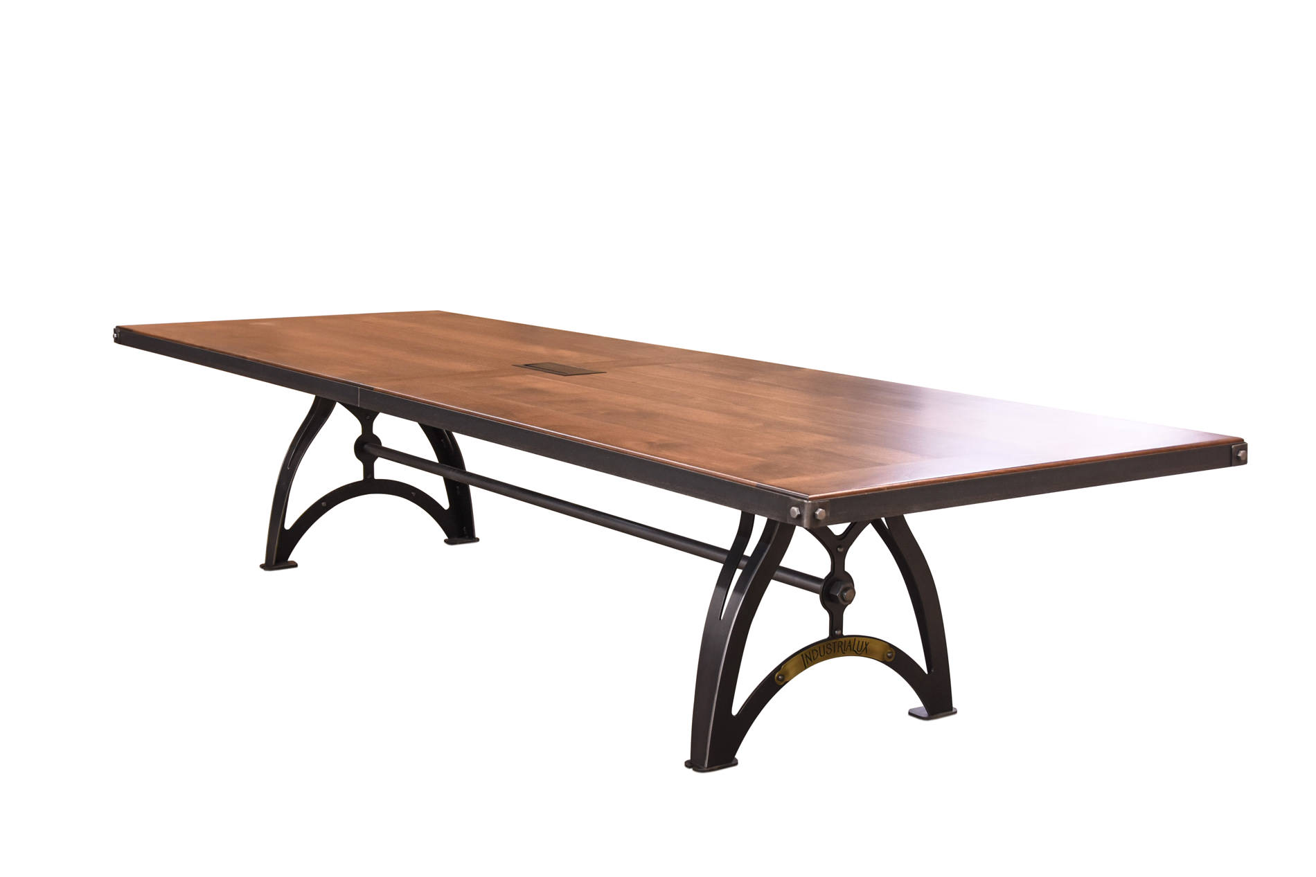 The IndustriaLux Table offers a refined industrial look with its simple yet elegant lines. Both beautiful and sturdy, the IndustriaLux is made from steel and accented by brass details. This conference table is available in an aged finish or any high gloss color.