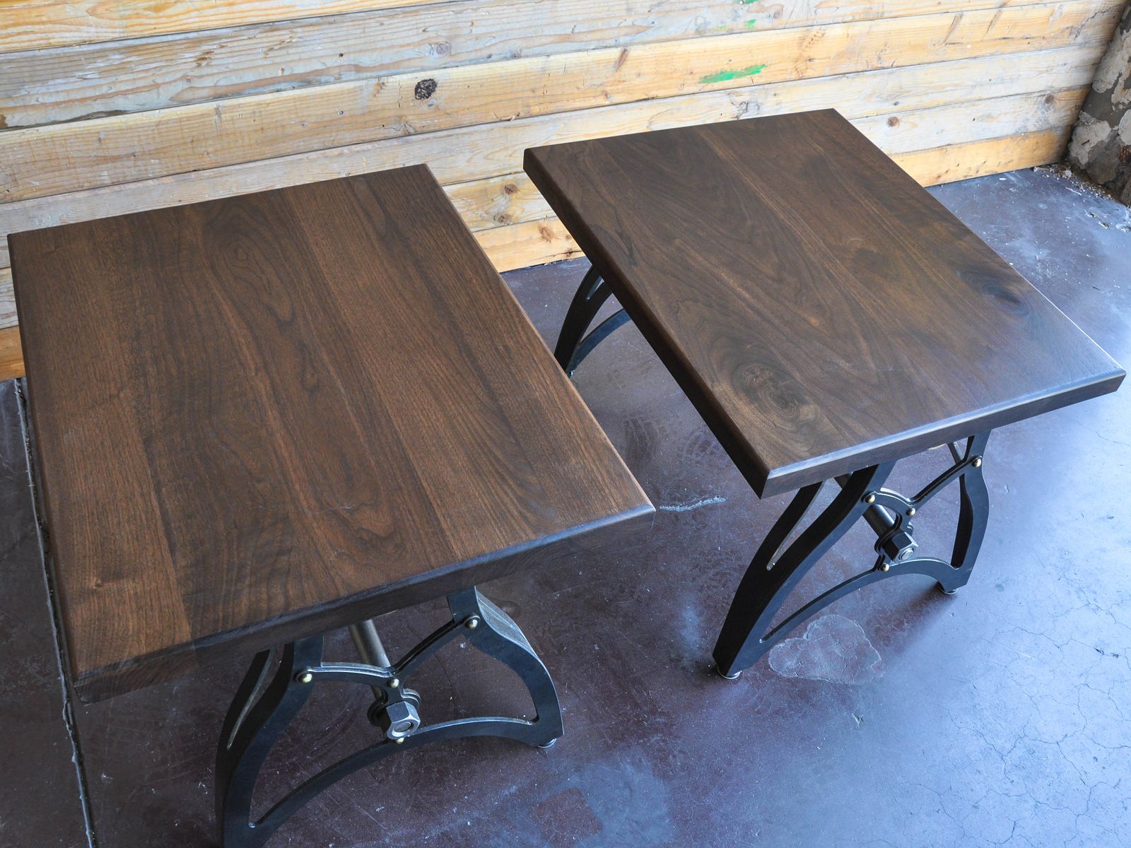 Mahogany, cherry, worn oak, reclaimed boxcar oak, and steel available