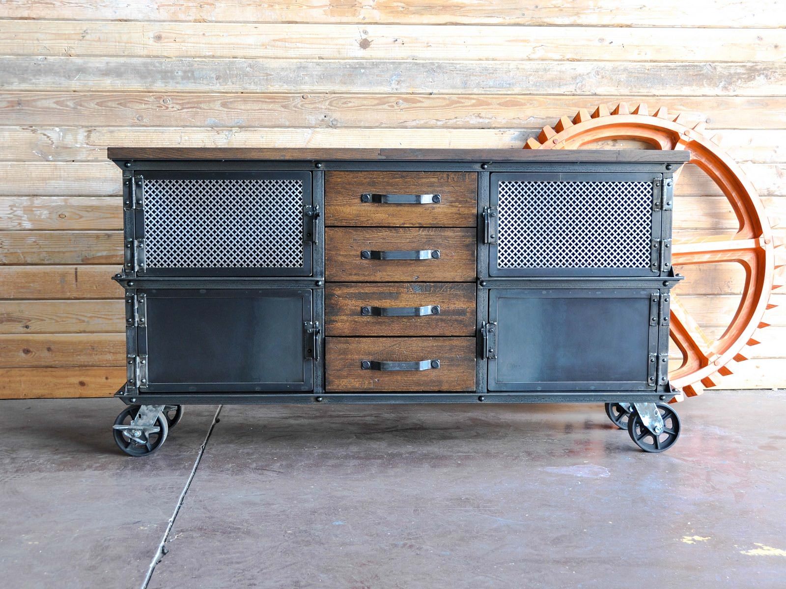 2 upper doors with mesh, 2 lower doors with solid steel fronts