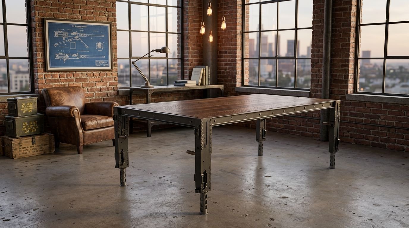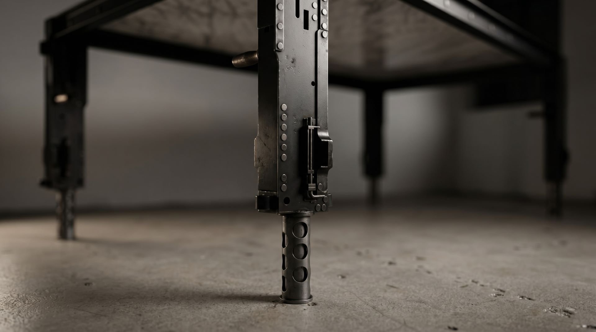 Modular “Combat” Height: Effortlessly transition from a 30” dining surface to a 42” standing desk or bar height via precision-threaded barrel extensions.