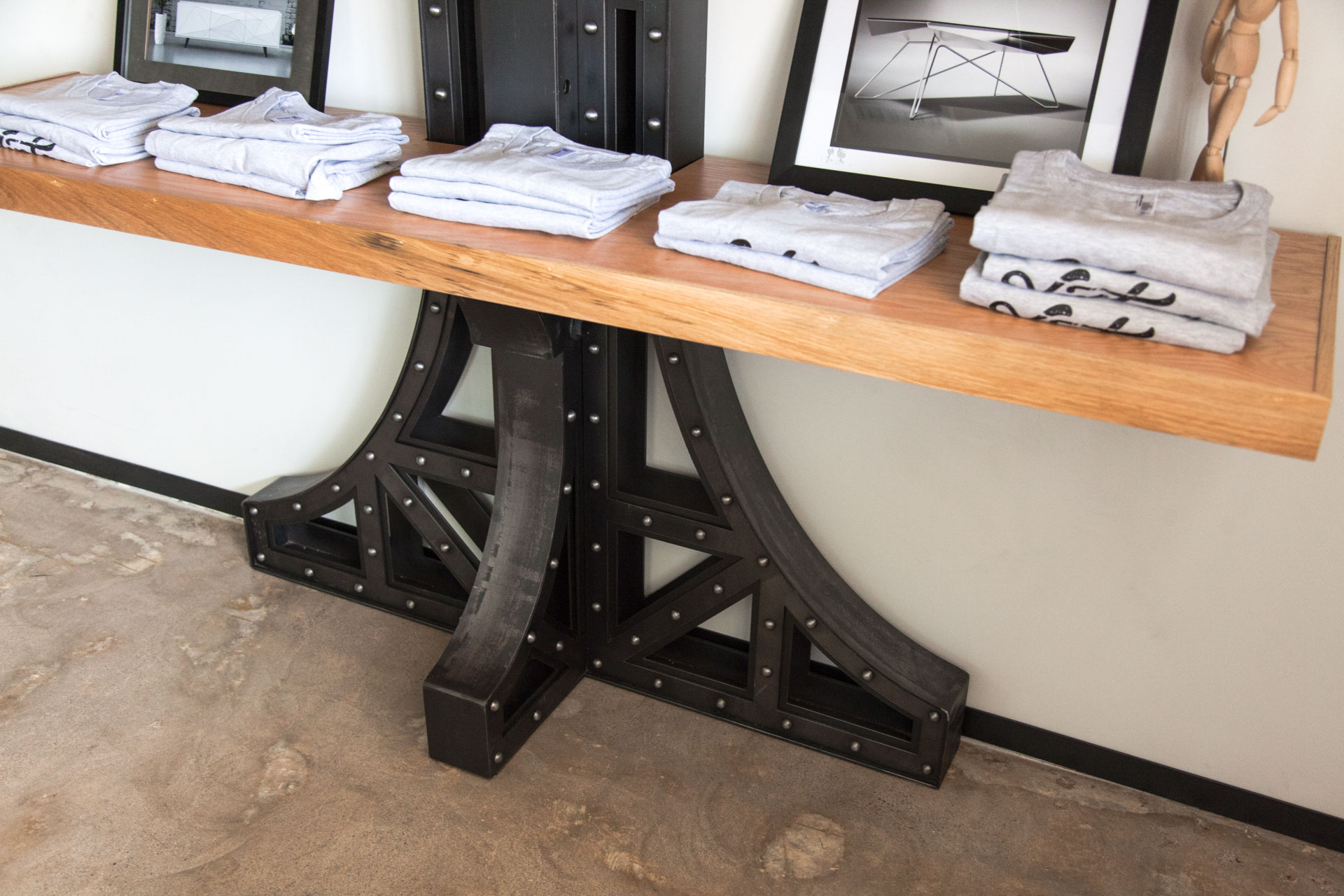 The Manhattan Shelf looks like it was salvaged from an old bridge. The heavy-duty base has adjustable height shelves, and can be chained with multiple units to make a really big statement. Create a unique library, bar, or retail experience with this shelf.