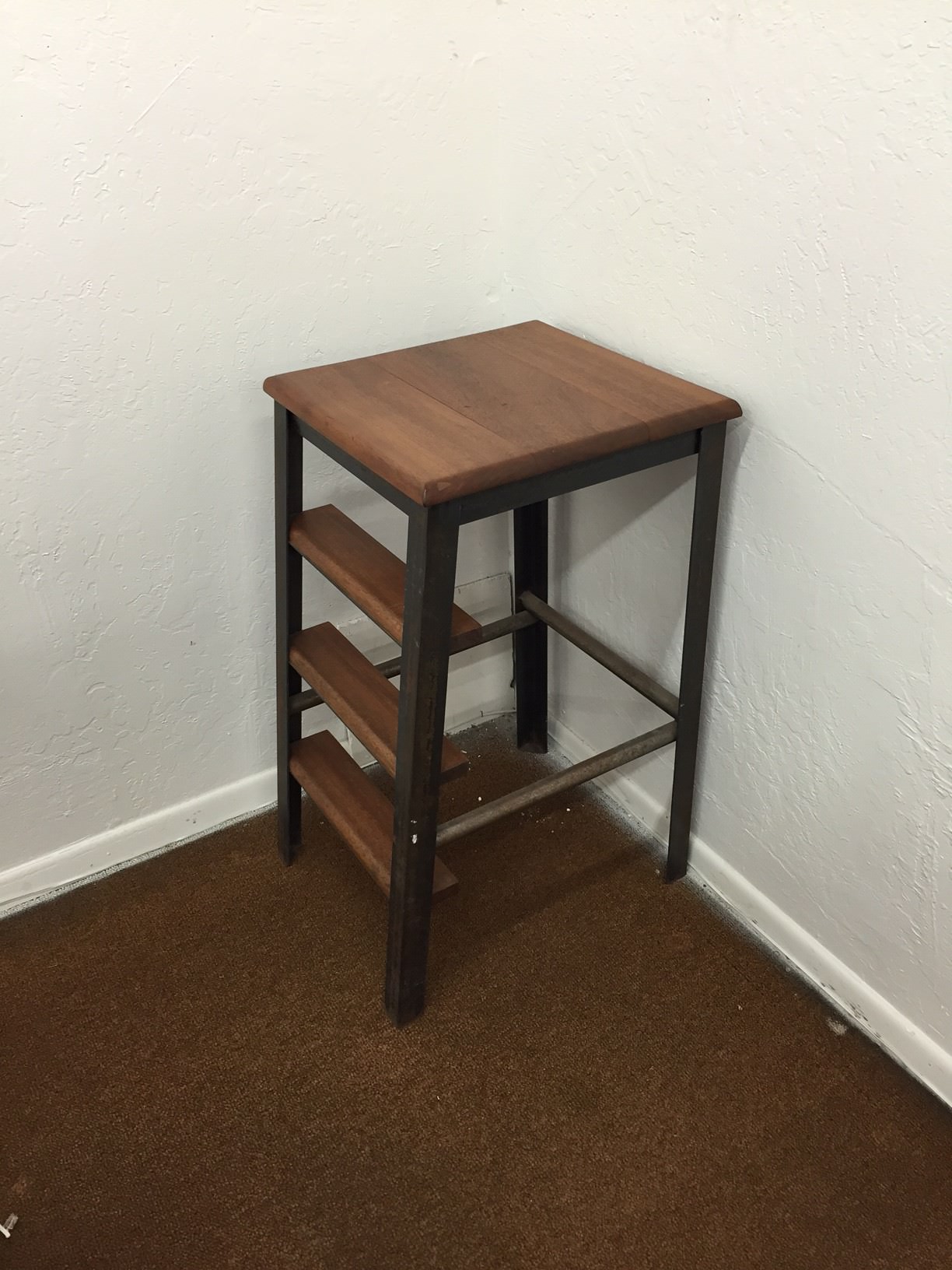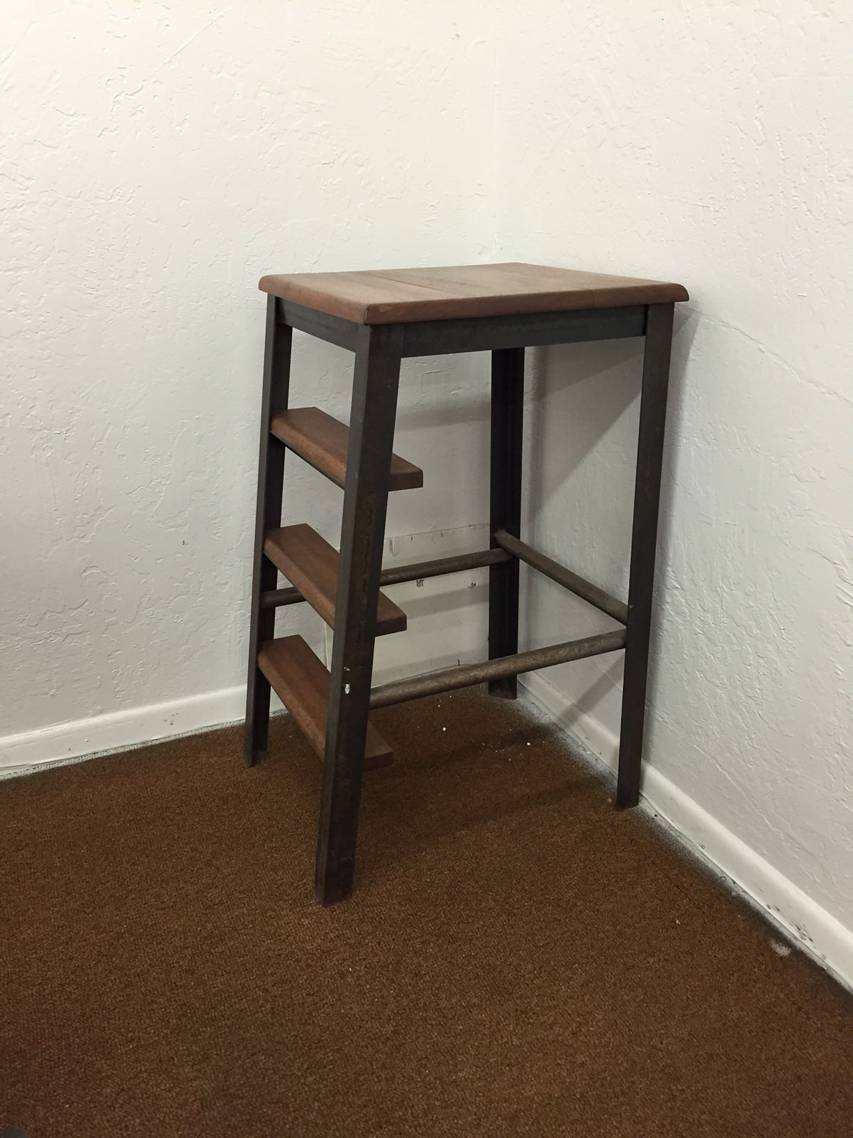 Steel frame with mahogany steps and top