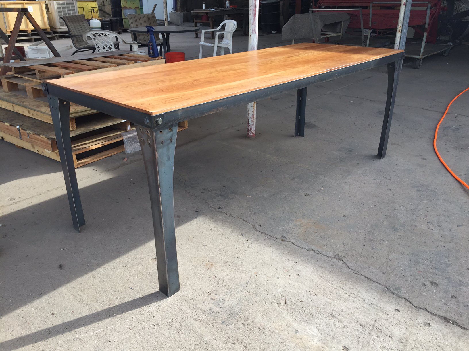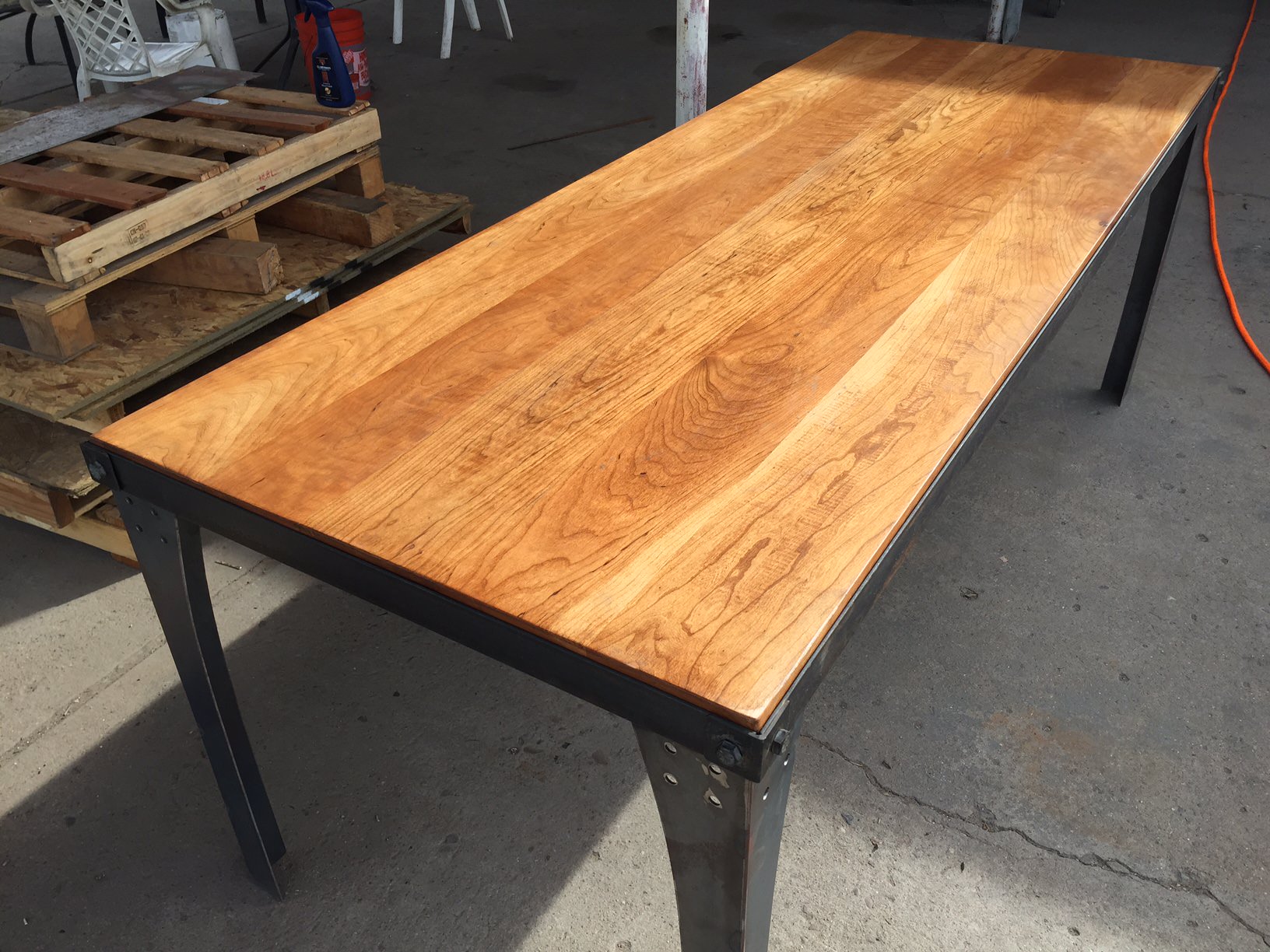 Custom table with a steel frame and a cherry top. Used in house for various purposes.