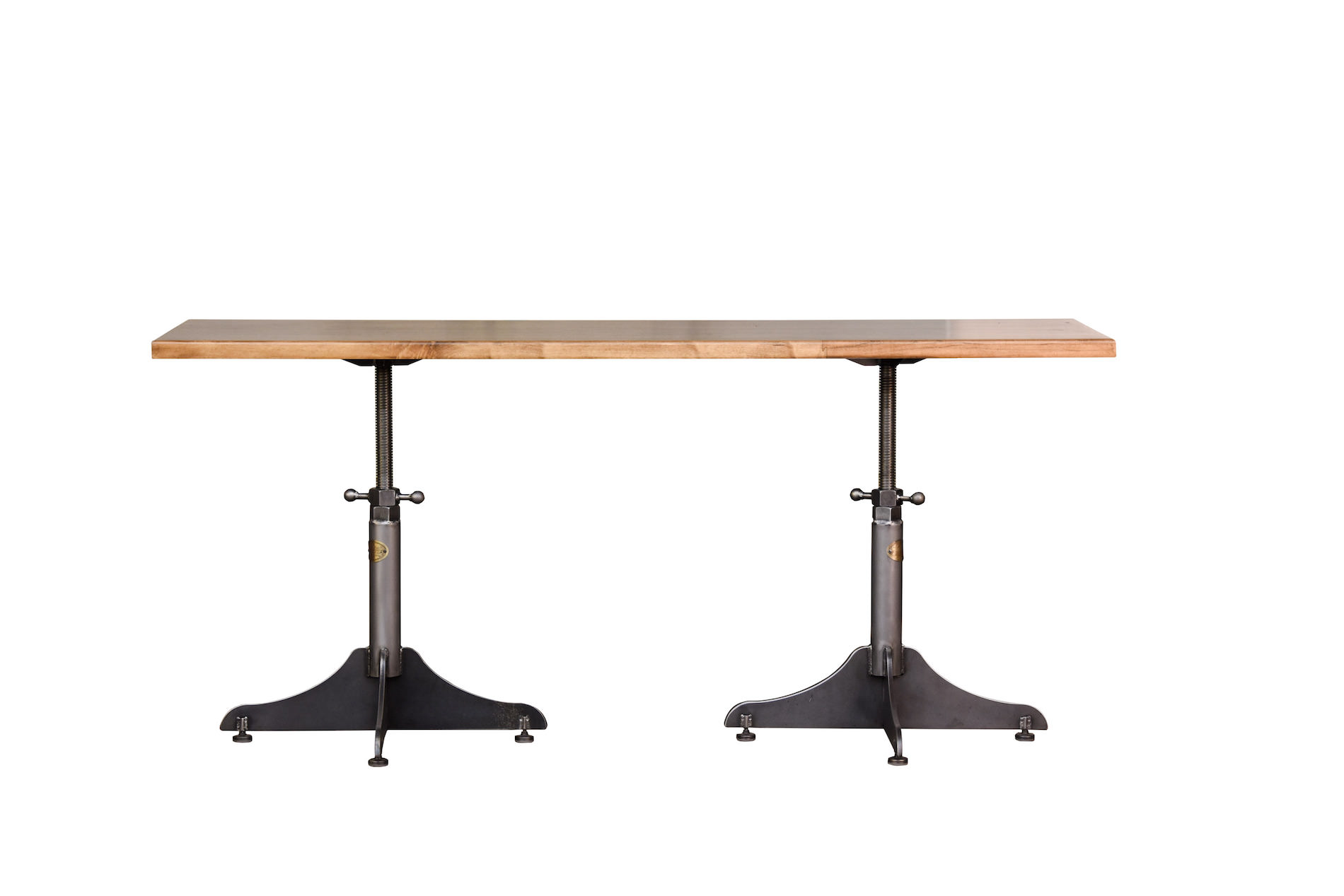 Starting price includes a 54″ x 24″ reclaimed boxcar oak top with an adjustable height