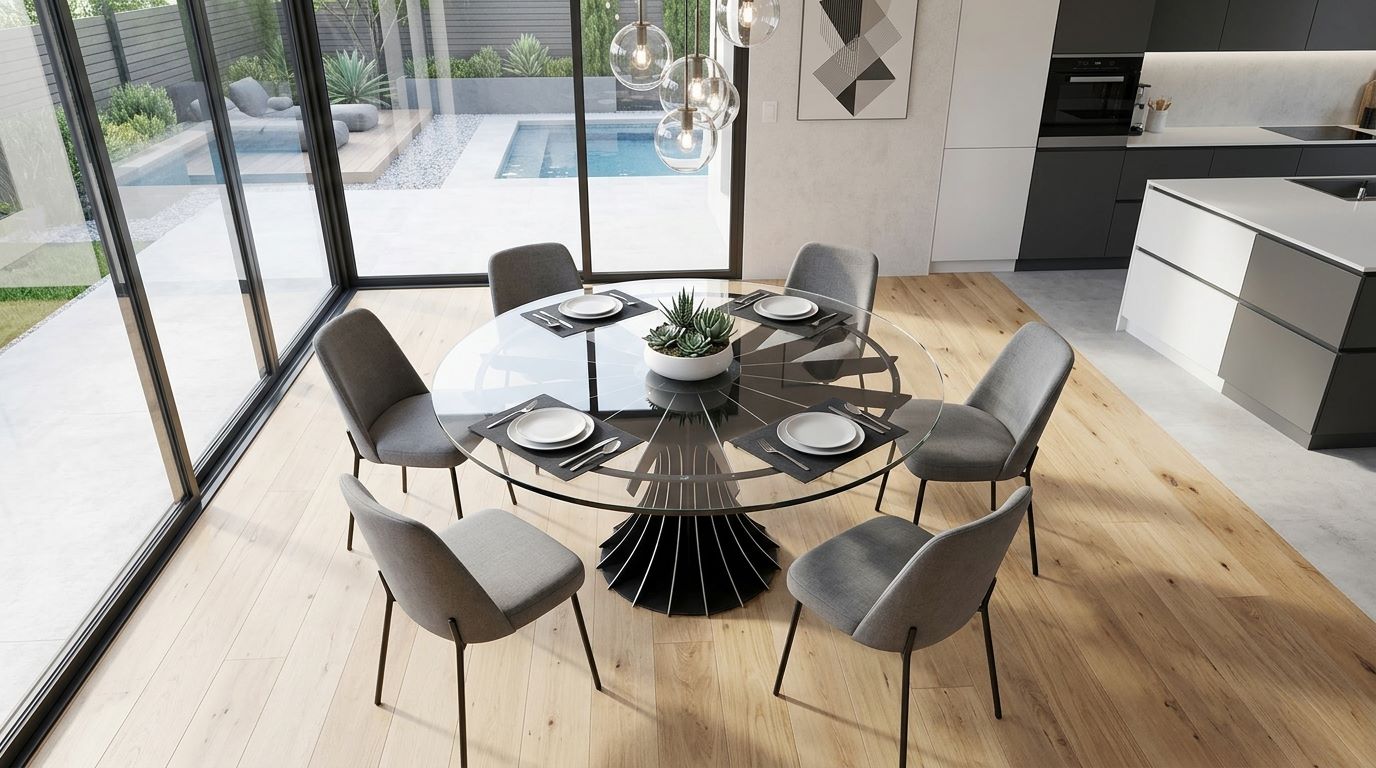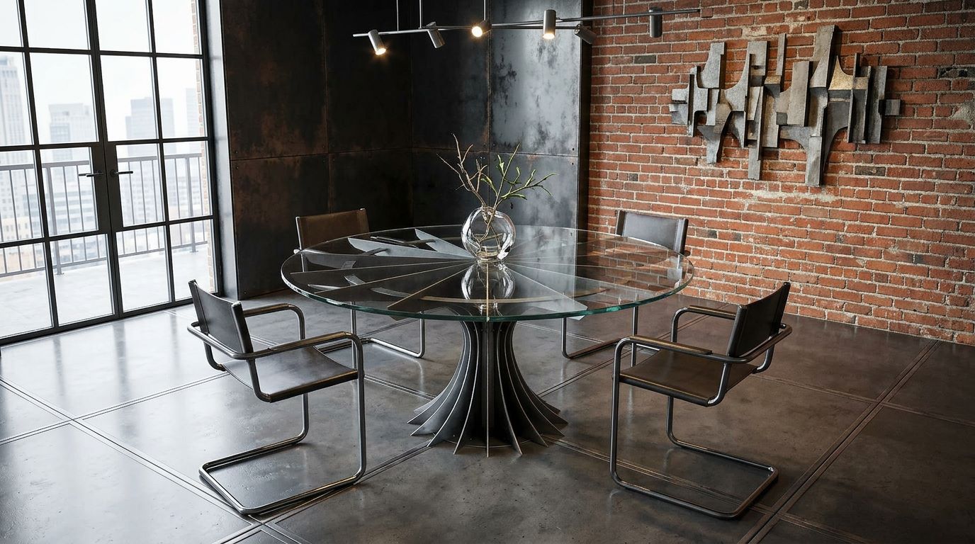 Premium Surfaces: Pair the architectural base with crystal-clear glass to celebrate the turbine design, solid hardwoods (Walnut, Oak, or Cherry) for a warm, organic contrast.