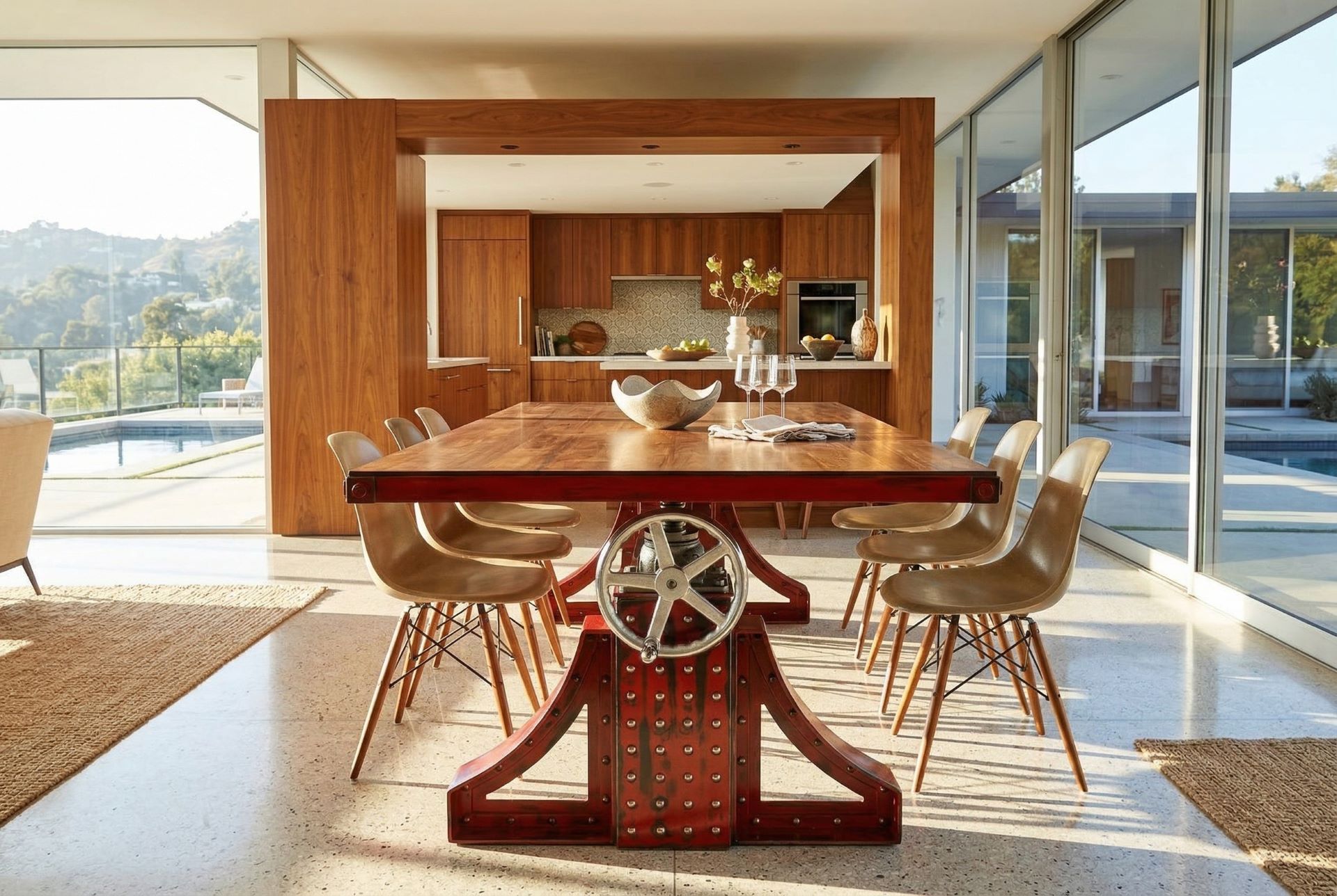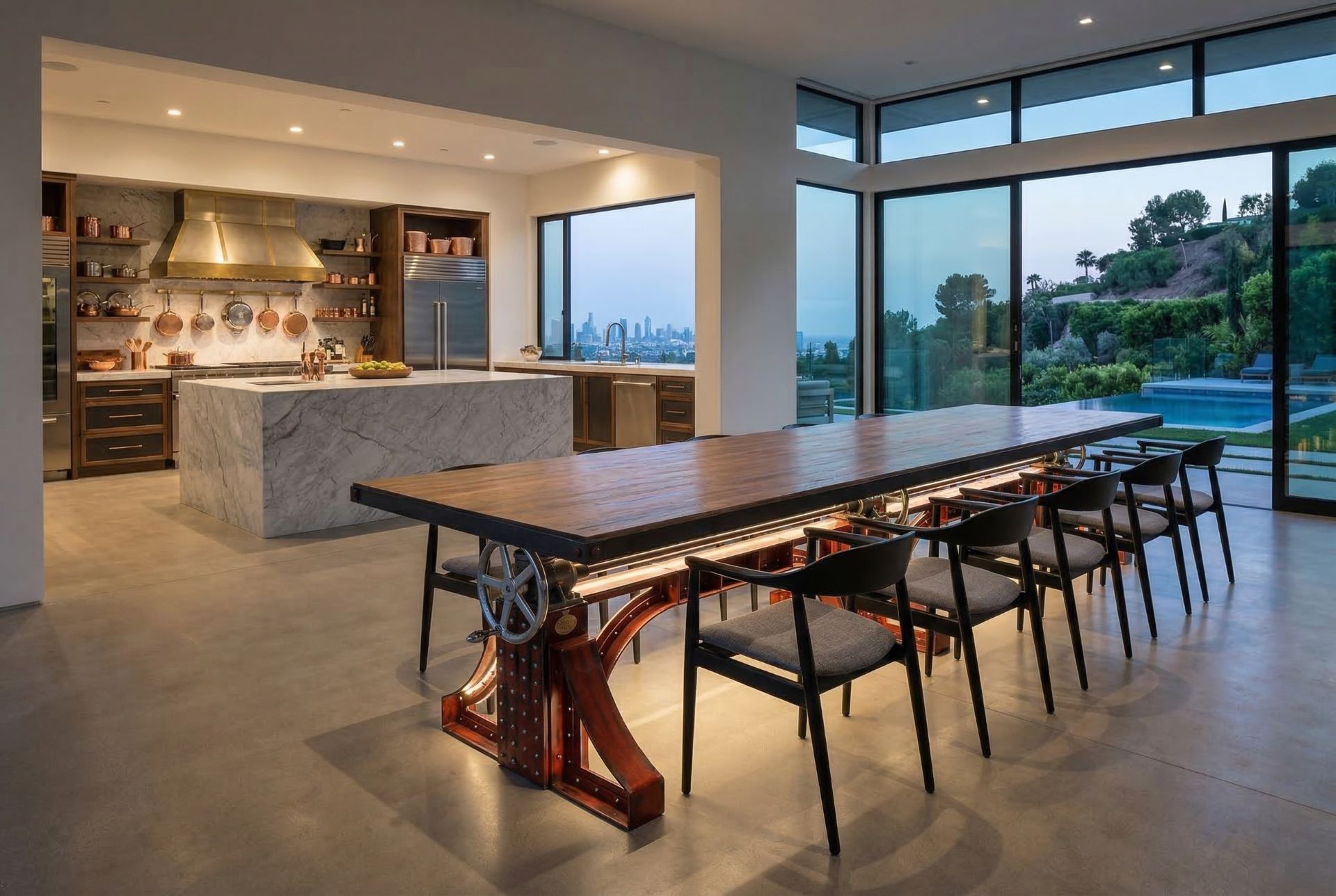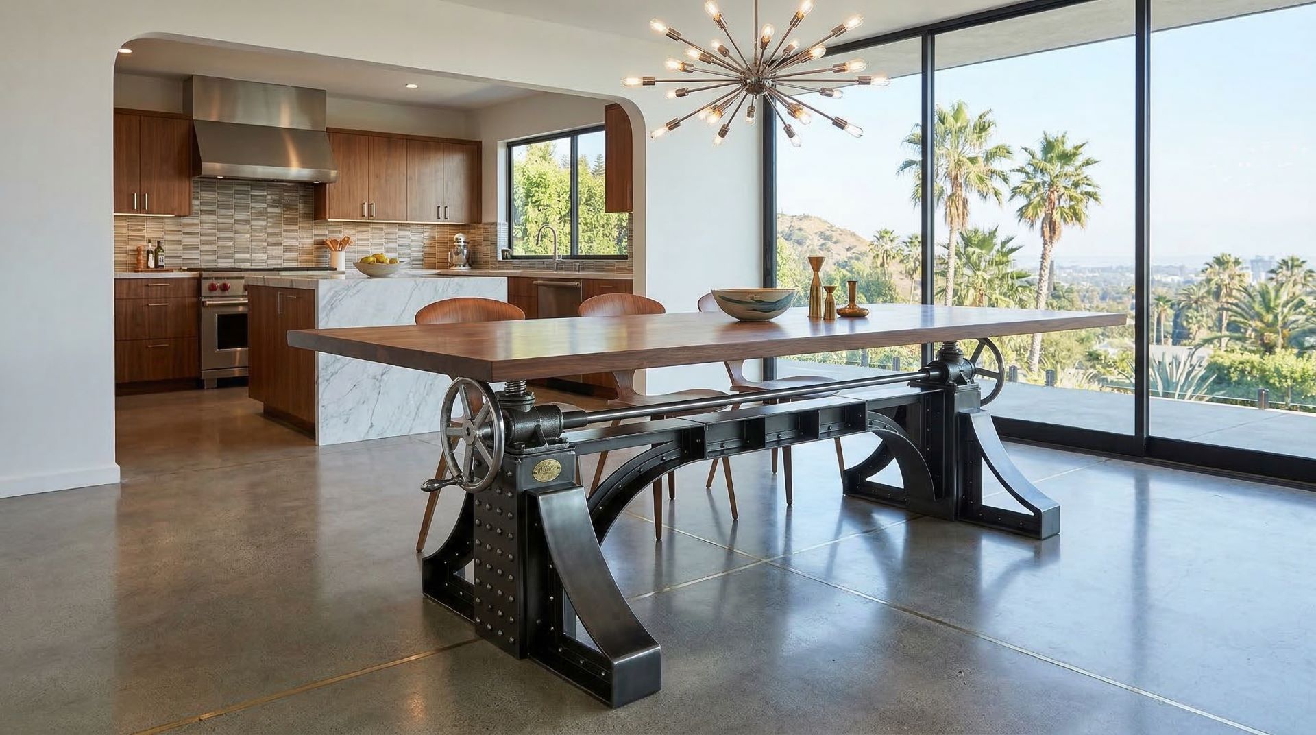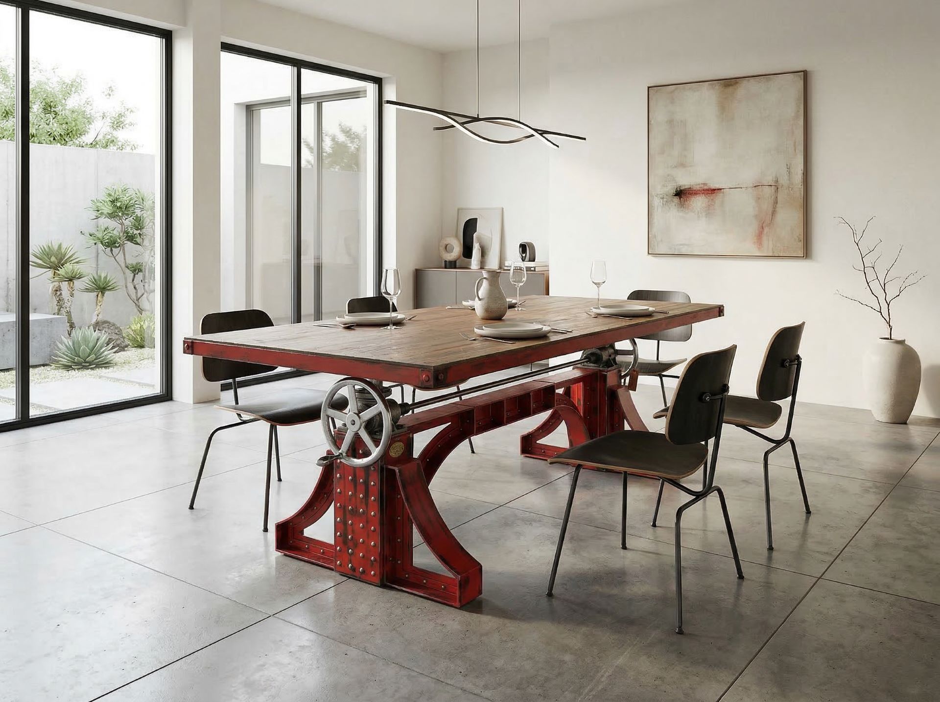 The Bronx Crank Table is the “wow factor” solution for open-concept lofts, industrial chic restaurants, and modern farmhouse estates. Its massive scale and mechanical beauty provide a focal point that anchors a room, while its height-adjustable nature solves the problem of multi-functional space design.