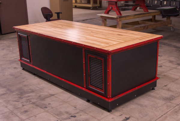 Here are some examples of desks we’ve made in the past and some concepts. All of these can be customized in various ways including size, finish, height, top material, drawers, data ports, etc. Feel free to contact us if you are interested in more info, or a quote.